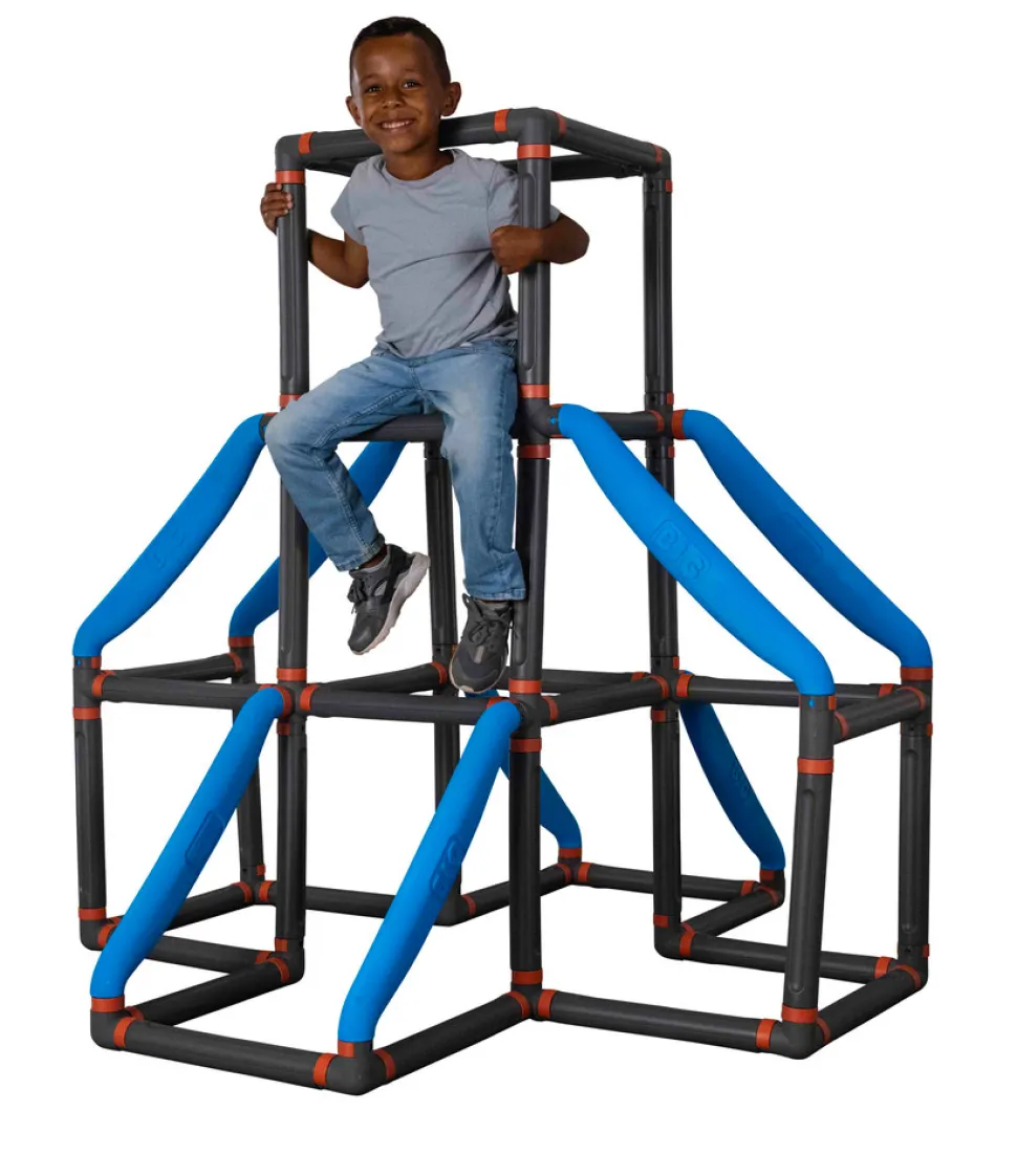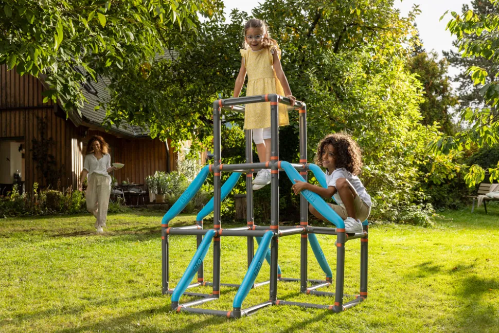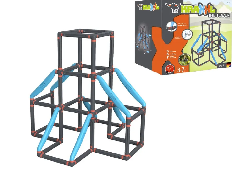 BIG Kraxxl The Tower er et førsteklasses klatretårn, der tilbyder børn ultimativ sjov, mens de fremmer deres fysiske aktivitet, bevægelse og motorik. BIG Kraxxl klatretårnet sikrer ekstrem stabilitet ved hjælp af sine meget stabile og fleksible lige stænger samt de diagonale traverser, der er unikke på markedet. Stængerne, som er fremstillet ved hjælp af blæsestøbningsprocessen, gør, at klatretårnet kan bære en belastning på op til 100 kg. Det innovative 2-klik system sikrer nem og hurtig montering af klatretårnet uden behov for ekstra værktøj. Samtidig sikrer det maksimal stabilitet. Den sikre forbindelse af 2-klik systemklemmerne kan kun frigøres af voksne for at sikre maksimal sikkerhed. Yderligere stabilitet er leveret af de U-kroge, der er inkluderet i sættet. Disse gør det muligt at fastgøre klatretårnet sikkert i jorden og sikrer dermed endnu mere sikkerhed. Klatretårnet har en højde på 140 cm og består af 3 etager. Der er dog talrige fleksible konstruktionsmuligheder, så størrelsen og antallet af etager kan variere i overensstemmelse hermed. Det betyder, at det sjove altid forbliver varieret og spændende. Det smukke design af klatretårnet i høj kvalitet er et absolut højdepunkt i enhver have eller legerum. Det vejrbestandige, UV-stabiliserede plastmateriale tåler alle vejrforhold uden at falme eller blive skørt, og det er desuden nemt og hygiejnisk at rengøre. BIG Kraxxl The Tower er fremstillet på den moderne BIG-fabrik i Tyskland og er testet for maksimal sikkerhed. Fra producenten af BIG Bobby Car. STOR bøffel stærk! For børn fra 3 år.