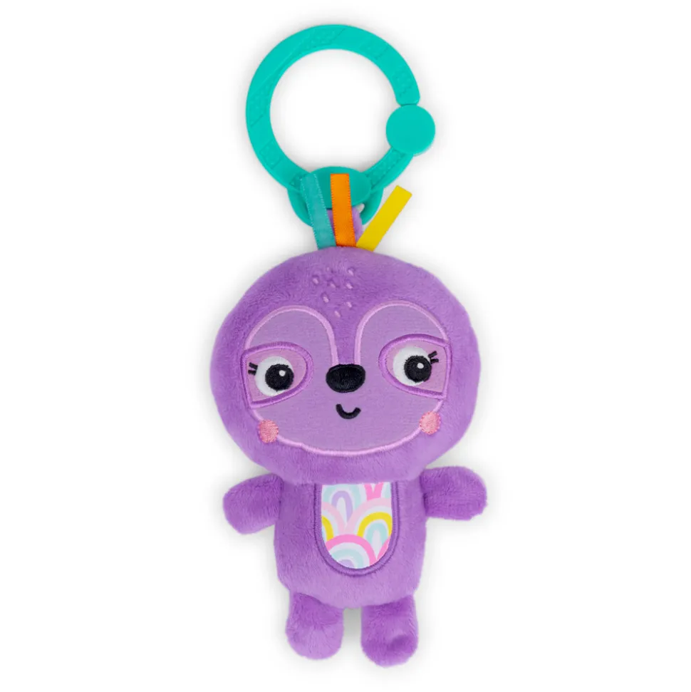 Dette dovendyr er vågnet fra sin lur og er klar til at lege! Din lille eventyrer vil elske dette ranglelegetøj fra Bright Starts. De klare farver og lyde vil få dit barn til at række ud efter sin nye lilla dovendyrsven, mens du nyder at se dit barn lære nye færdigheder. Babyer elsker farverige mønstre, bideringe med forskellige teksturer og dovendyrets skjulte klokkespil, der siger fascinerende lyde, mens forældre er vilde med den venlige dovendyrs alsidighed. Legetøjet kan nemlig nemt fastgøres til barnevognen, pusletasken og aktivitetsstativet, så din baby aldrig behøver at undvære sit yndlingslegetøj. Alt dette gør dette fine dovendyr til familiens favorit!