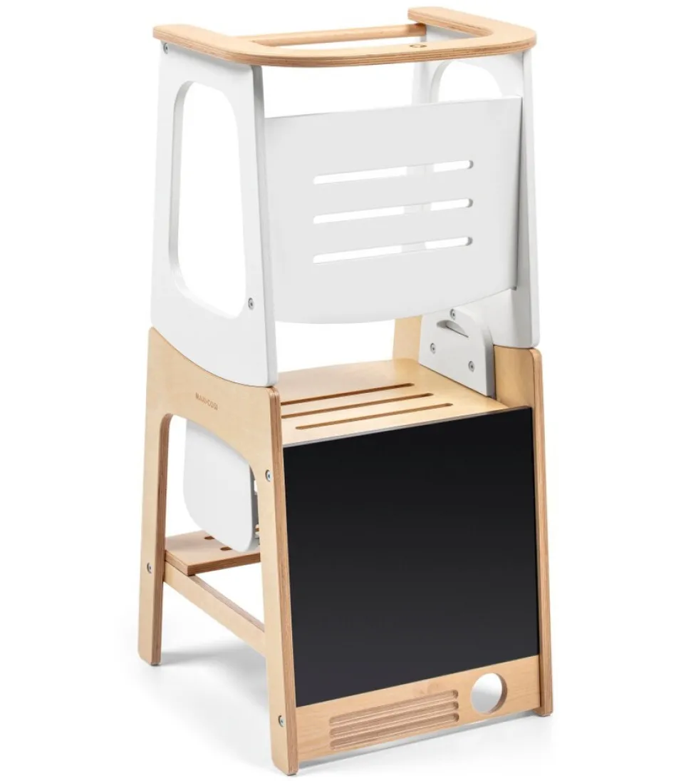 Lad dit barns uafhængighed svæve med Maxi-Cosi Toucan, et 3-i-1 læringstårn inspireret af Montessori-principper, der giver din lille mulighed for at lære gennem udforskning. Fra køkkenhjælper til aspirerende kunstner, Toucans 3-i-1-design åbner en verden af muligheder for din lille. Deltag i køkkensjov i læringstårntilstand, slip deres kreativitet løs på den integrerede tavle i bord- og stoltilstand, og se dem nå nye højder med muligheden for trædeskammel. Toucan 3-i-1 læringstårnet giver den ideelle platform for dit lille barn, når de deltager i familieaktiviteter rundt omkring i hjemmet. Den justerbare højde sikrer, at dit barn altid kan nå bordpladen sikkert og komfortabelt, mens den integrerede tavle giver dit barn et kreativt udløb. Uanset om det bruges som skammel eller i bord- og stoletilstand, har din lille et behageligt sted for sig selv, hvor de kan slappe af, udtrykke deres kreativitet eller tage del i, hvad der sker omkring dem.