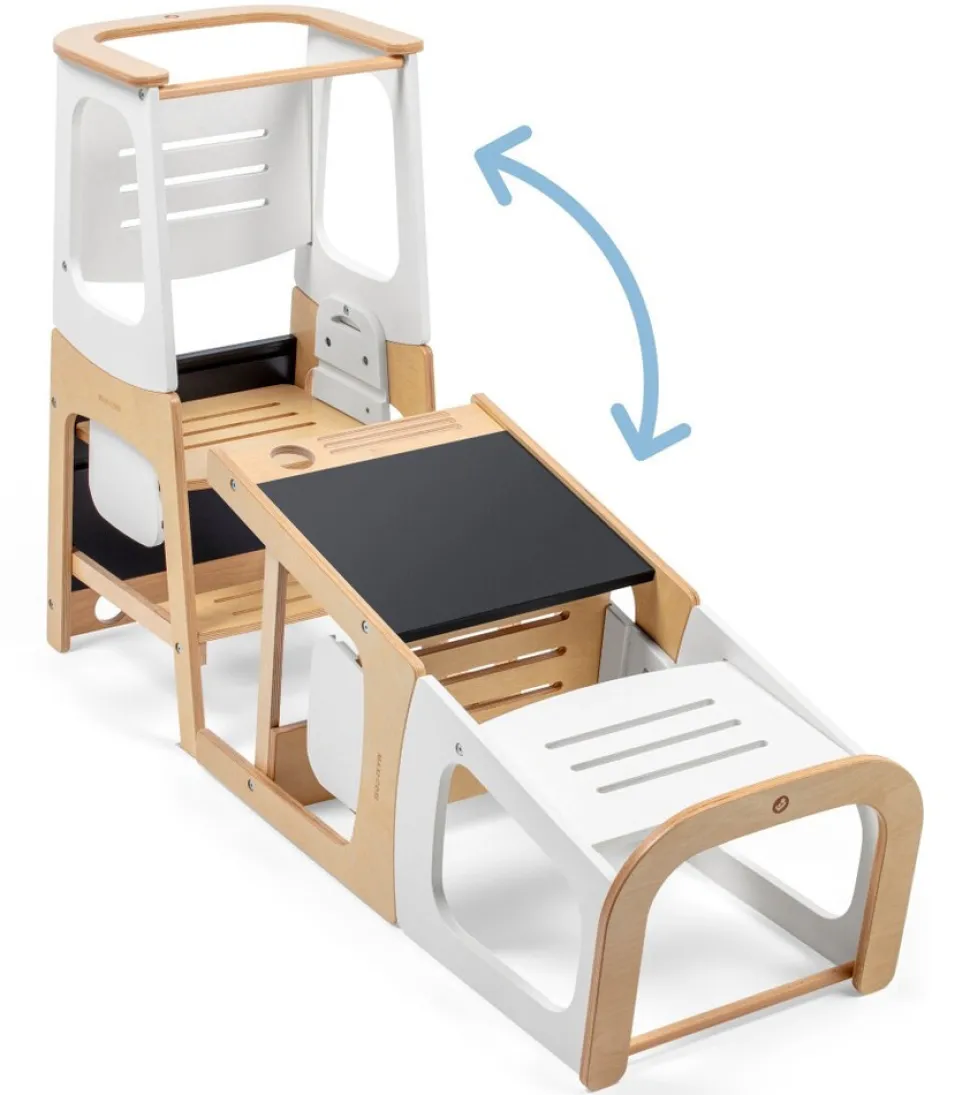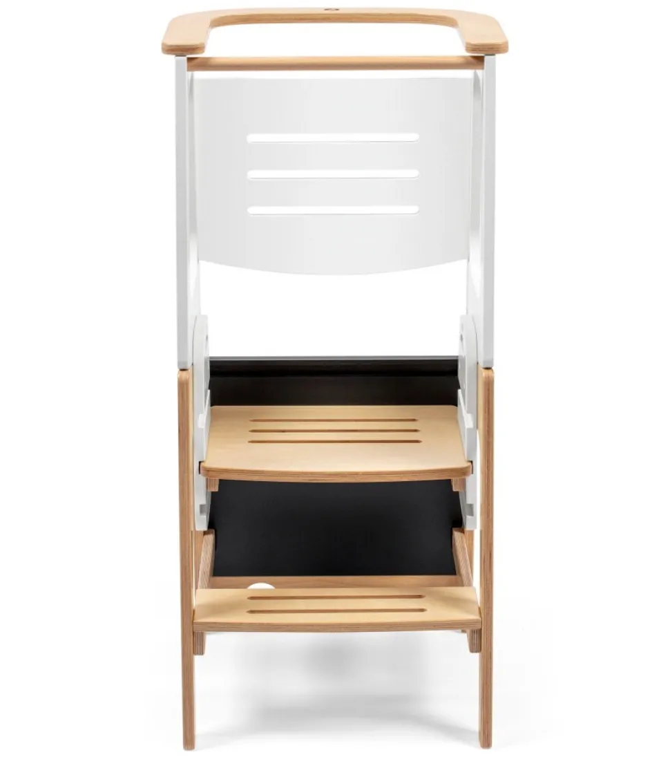 Toucan er nem at bruge for både forældre og børn. Skift mellem tilstande er enkelt; en hurtig rotation forvandler Toucan fra et læringstårn til et bord- og stolesæt. Når dit lille barn er vokset ud af læringstårnet, kan du tage det af for at forvandle det til en trædeskammel i træ. Toucans alsidige 3-i-1 design giver dit barn mulighed for at tackle en lang række opgaver, lige fra at nå køkkenbordplader til at børste deres egne tænder. For forældre er det nemt at holde Toucan ren takket være dens beskyttende og vandafvisende finish.