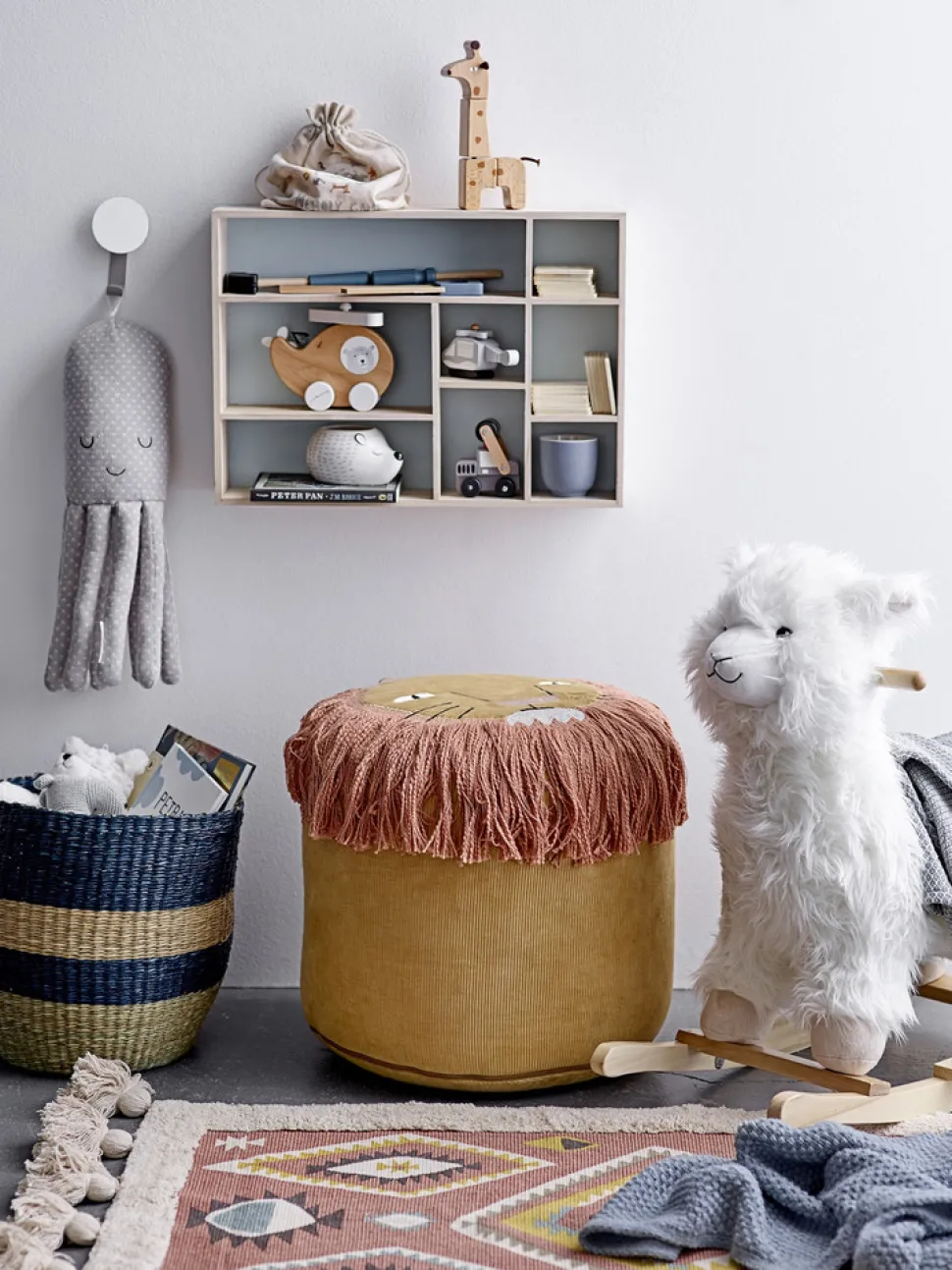 Gyngehest i en moderne fortolkning, der er det perfekte alternativ til den traditionelle gyngehest. Lamaen er fantastisk sød og lækker, og alle børn ville elske denne ven på sit børneværelse.