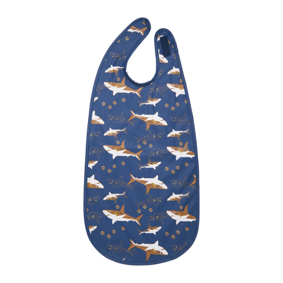 Lang hagesmæk i recycled polyester. Hagesmækken lukkes med velcro bagpå. Med all-over-print.