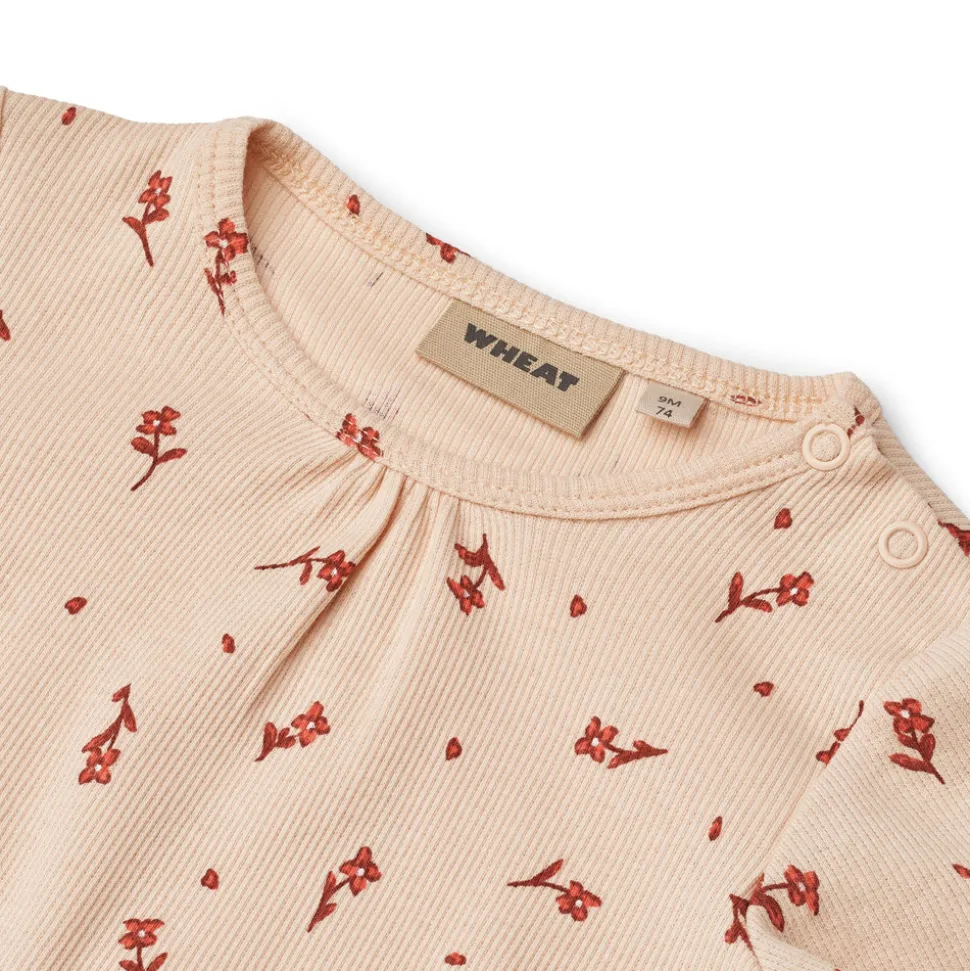 Wheat’s body er unisex og et ægte basisstykke i din babys garderobe, da det kan bruges alene eller som et ekstra lag under hverdagsbeklædning. Bodyerne har enten trykknapper på skuldrene eller knapper i nakken for bedre komfort, når du klæder din baby på. Bodyen har også trykknapper i bunden, hvilket gør det lettere for dig at komme til din babys ble.