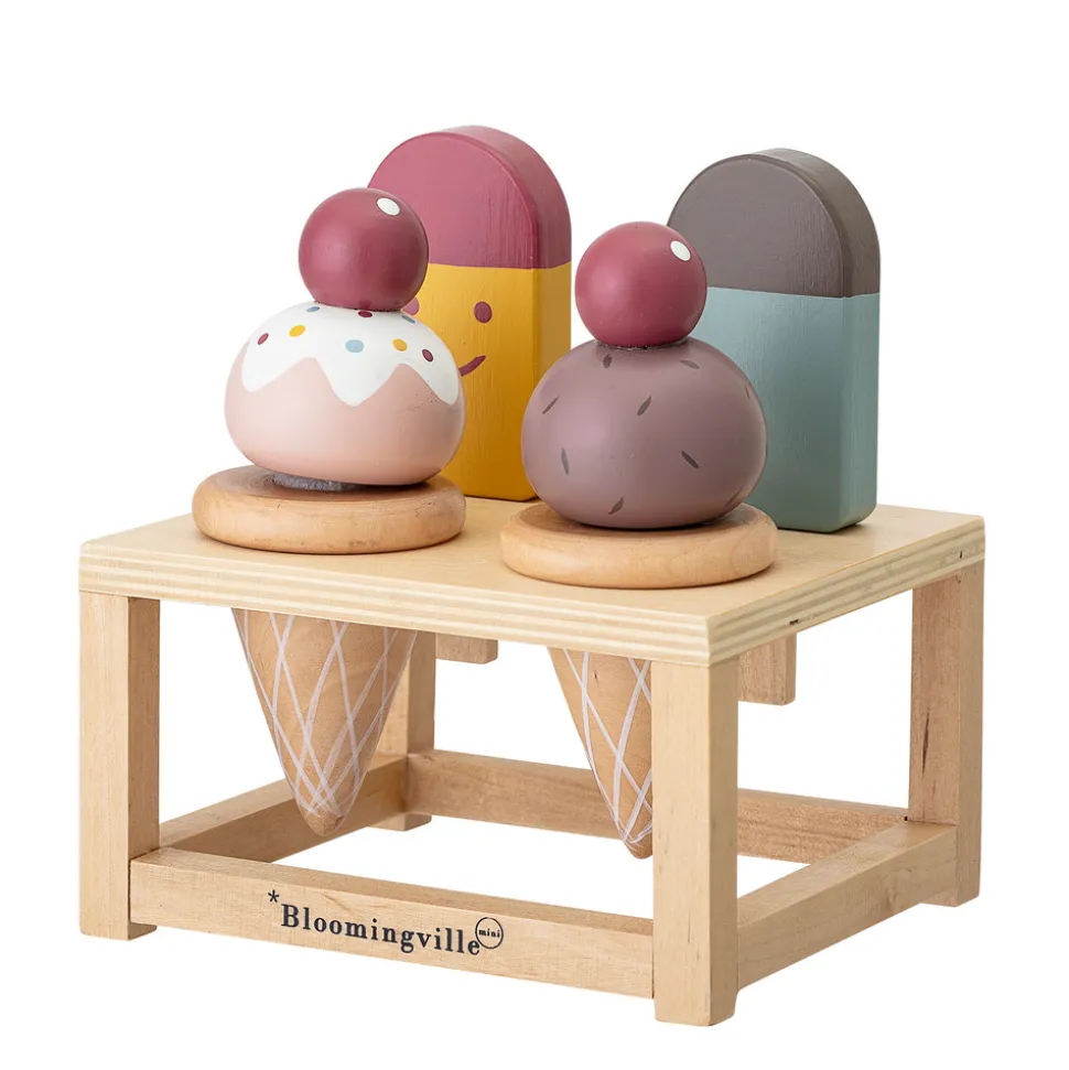 Icecreams i træ og flotte farver perfekt til hverdags leg.