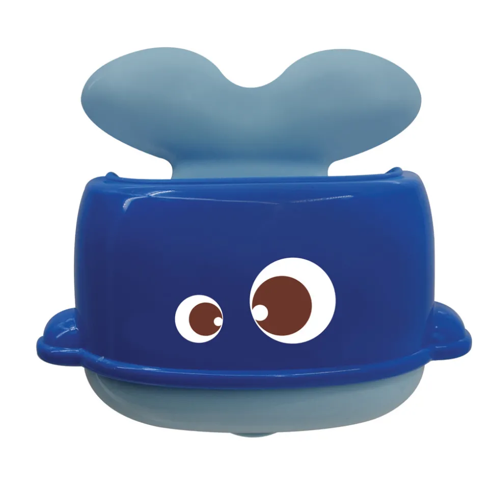 Badetiden bliver til en leg når fantasien sættes i gang og en sjov leg opstår. Sættet indeholder 1 badebog med illustrationer, 1 hval til ophæng, 1 bold, 3 badedyr, og 3 spande. Hvalen har en sugekop bagpå, så den kan sættes fast på fliserne eller badekarret. Hæld vand i hvalens hoved og ved hjælp af drejeskiven under hvalen bestemmer man selv om vandet skal løbe ud igen eller blive deri. Dyrene kan sprøjte med vand og spandene laver regnvejr via de små huller i bunden af spanden. Badebogen kan sætte en god historie i gang mellem forældre og barn. Sættet kommer i en praktisk kasse, som man efterfølgende kan bruge til opbevaring af legetøjet.