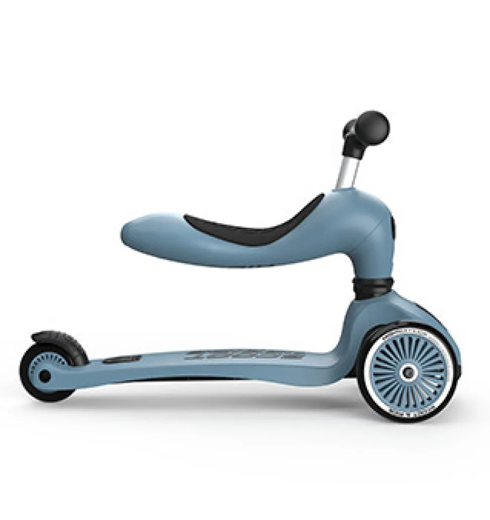Highwaykick 1 er verdens første 2-i-1 løbehjul og løbecykel til børn! De kan selv vælge, om de vil sidde eller stå, hvilket gør det muligt for selv étårige at bruge denne model. Små børn starter gerne med løbecyklen, som gør det nemt at skubbe sig fremad, mens man sidder. Løbehjulet kan også justeres i højden og er derfor den perfekte følgesvend gennem hele børnehavealderen, fra 1-5 år. Alt kan gøres uden værktøj! Highwaykick 1 kommer også med en sikkerhedsklods, der fungerer som en væltebeskyttelse, for ekstra sikkerhed.