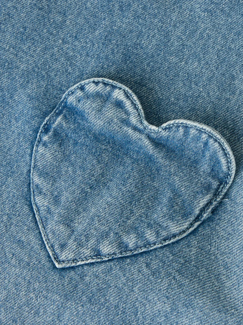 Lulia Denim Spencer fra Lil’ Atelier er en charmerende og alsidig kjole, der passer perfekt til både hverdag og festlige lejligheder. Den klassiske spencer-model i medium blå denim har en flot V-udskæring både foran og bagpå, hvilket giver et moderne og feminint udtryk. De to hjerteformede lommer på forsiden tilføjer et legende og sødt touch, som børn vil elske. Materialet er blødt og slidstærkt, så kjolen kan holde til masser af leg og bevægelse. Den er nem at style med en t-shirt eller bluse under, og kan bruges året rundt. Lil’ Atelier er kendt for deres tidløse og kvalitetsbevidste designs, og denne spencer er ingen undtagelse.