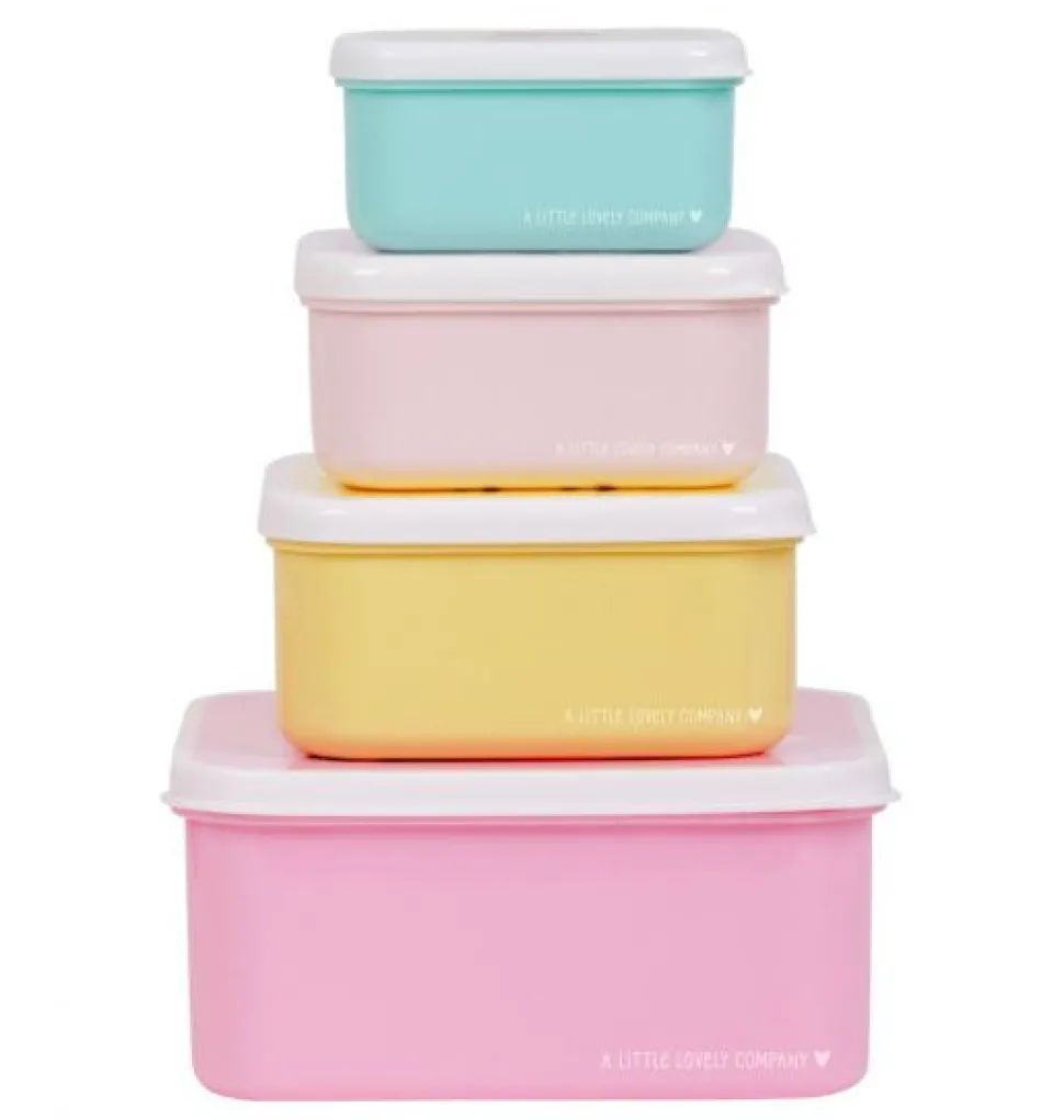 Opbevar din madpakke eller yndlingssnacks i dette smarte snackbokssæt. Frugt, grøntsager, snack, rugbrødsmadder, sandwich eller salater kan let passe ind i disse bokse. Dette dejlige frokost- og snackbokssæt inkluderer fire forskellige størrelser som gør det let at adskille de enkelte madvarer. Fantastisk til skolefrokoster og snacks på farten.