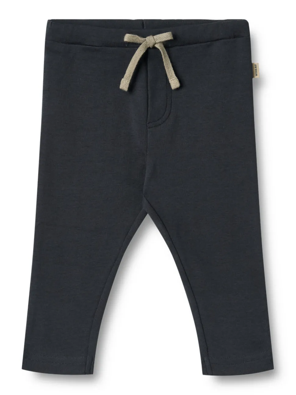 Bløde jersey bukser med bindebånd i økologisk bomuld til din baby. Wheats jersey bukser er bløde og designet til unisex. Pasformen er normal, sidder nært til kroppen og har elastik i taljen med bindebånd for bedre komfort. Al basis er perfekt i kombination til andre styles såsom en body, sweatshirt eller sammen med en striktrøje. Udover det kan dit barn også bruge disse bukser som nattøj på de kølige nætter.