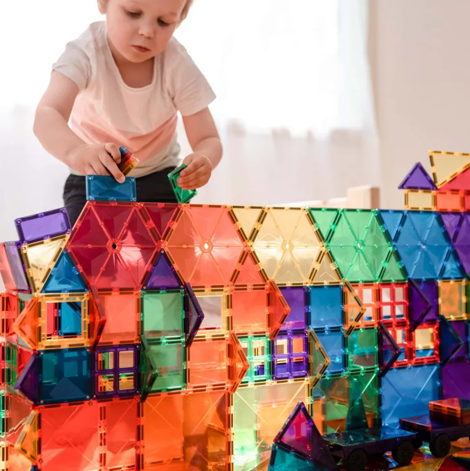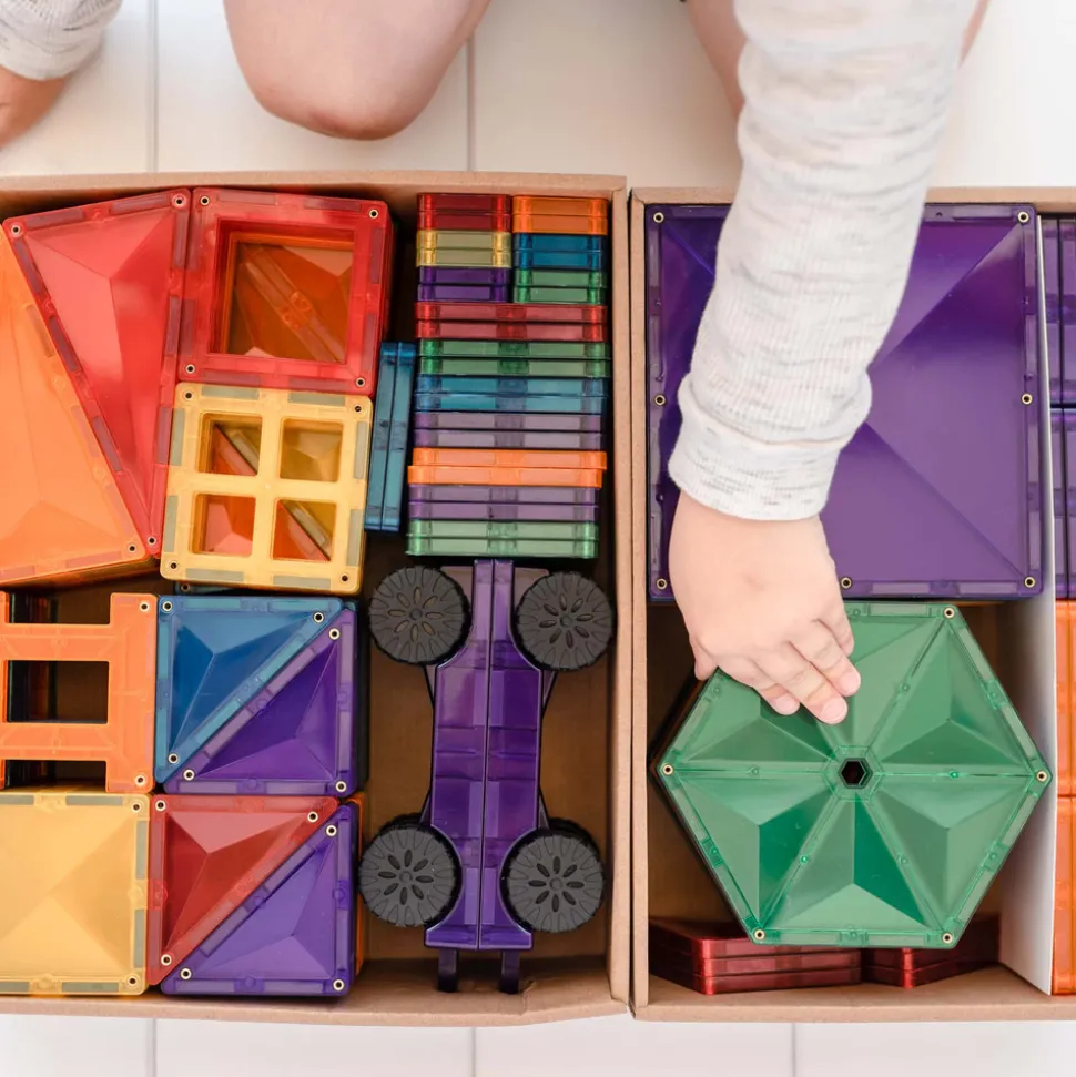 Lad børnene udfolde deres fantasi med Connetix Mega Pack – magnetsæt med 212 dele i regnbuefarver. Dette ultimative startsæt indeholder former i alle farver, inklusive 6 store sekskantede fliser og 2 lilla bilbaser. Perfekt til leg mellem søskende, familie og venner, tilbyder dette sæt uendelige muligheder for kreativ leg. Byg regnbuekreationer som høje tårne, slotte, forlystelsesparker, robotter, lastbiler, tog og meget mere. Connetix vokser med dit barn, efterhånden som deres leg bliver mere avanceret.