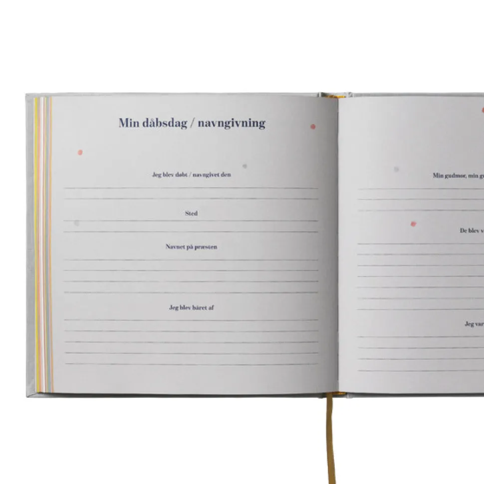 Bogen er fuld af relevante spørgsmål om alt fra graviditeten, babys første tid, personlighed, traditioner i familien mm. og giver mulighed for at notere alle tankerne om den altoverskyggende kærlighed, der vokser i takt med barnet. I udfyldt stand bliver ‘mine første år – minder og gemmer – special edition’ en mindeværdig skattekiste af ord og billeder, der vil blive værdsat mange år frem.