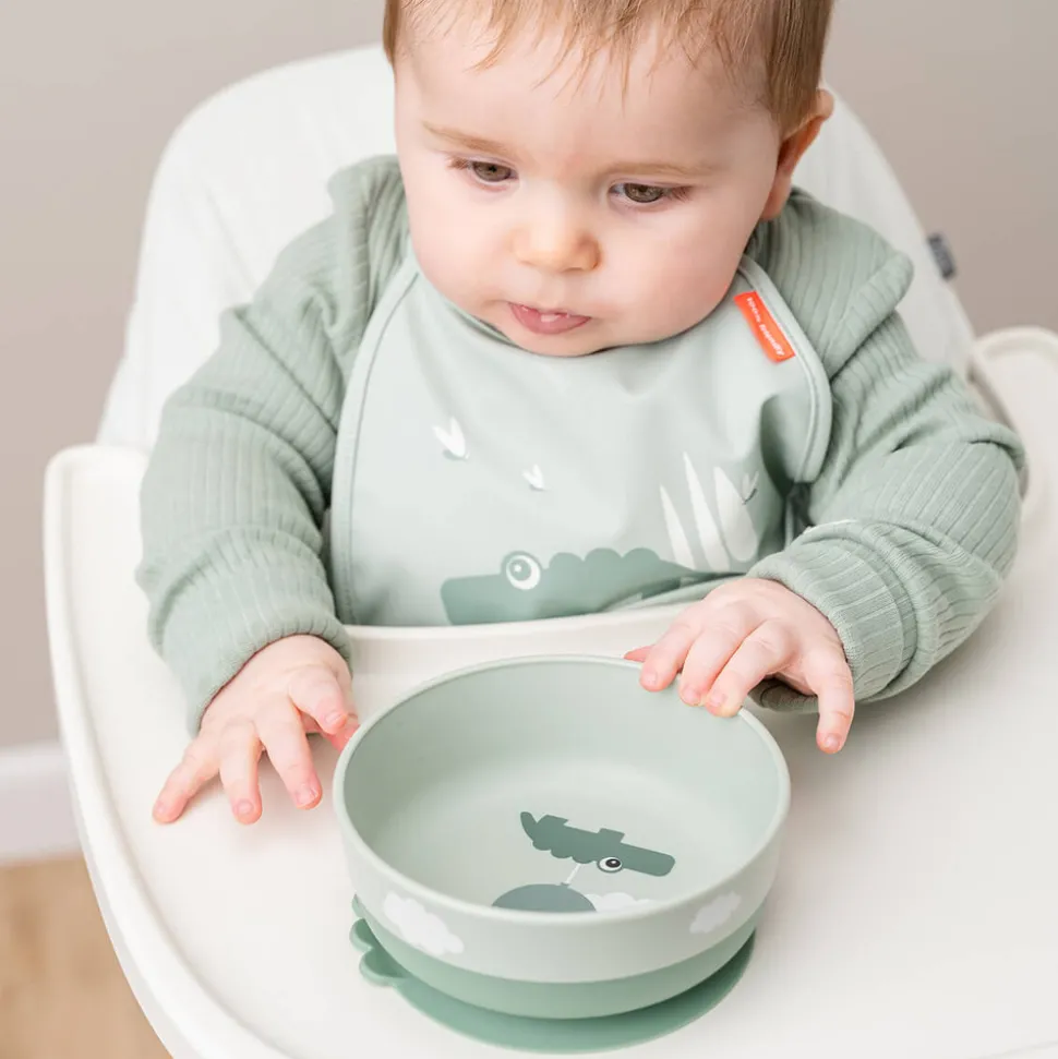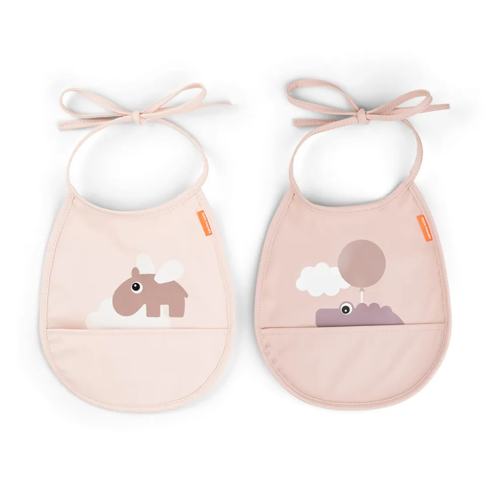 Den vandafvisende overflade beskytter tøjet mod pletter og gør rengøringen til en leg. Hagesmækkene har en smart lomme, der fanger spildt mad, så du slipper for ekstra oprydning efter måltiderne.