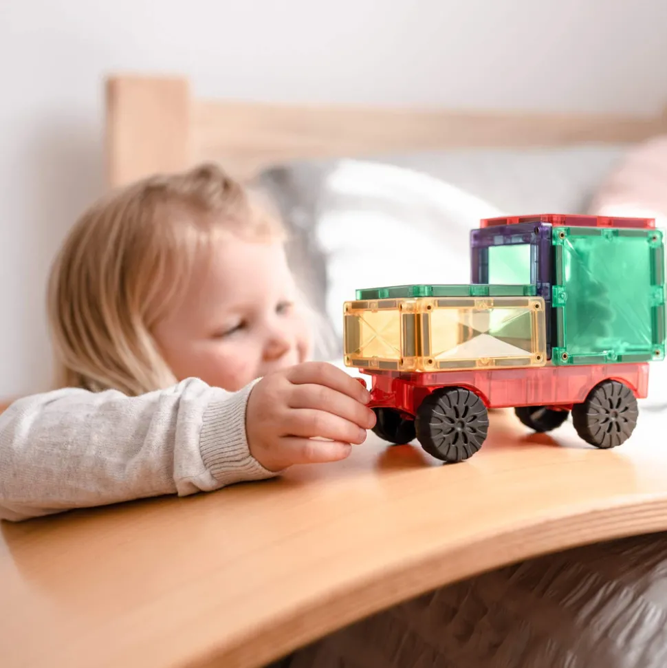 Connetix Motion Pack – magnetsæt 24 dele – rainbow er ideel for små køretøjsentusiaster. Sættet indeholder to bilbaser med ægte gummihjul og en række magnetiske brikker. Denne alsidige pakke kan bruges alene eller som et supplement til andre sæt, hvilket giver børn mulighed for at opdage magnetisme og farver, mens de bygger et bredt udvalg af køretøjer – alt fra biler og både til fantasifulde skabninger. Som et holdbart og fleksibelt legetøj udvikler Connetix sig sammen med dit barn.