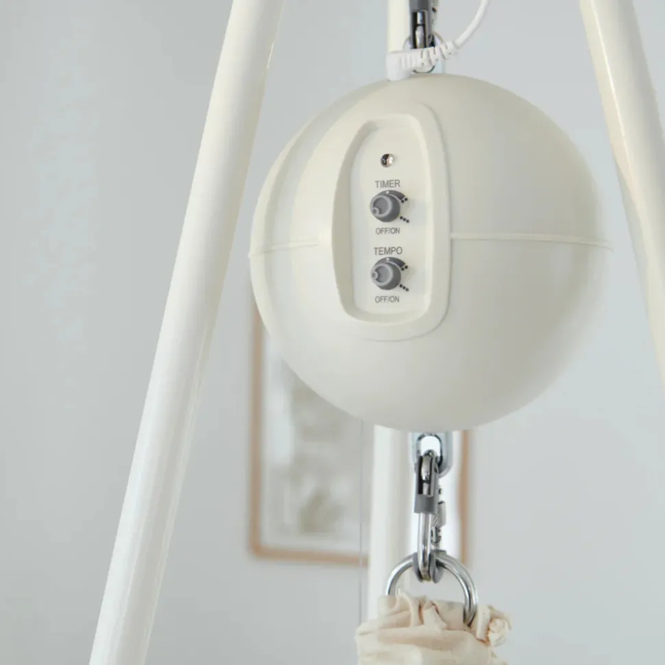 Ønsker du en hjælpende hånd til at holde Slyngevuggen, Tvillingeslyngevuggen eller Vuggens beroligende bevægelser i gang og hjælpe dit barn med at falde til ro eller sove bedre? Vuggemotoren er det du leder og har brug for. Den lydsvage Vuggemotor sørger for at vugge dit barn med blide, beroligende bevægelser, som får selv de mindste til at overgive sig til søvnen. Den klarer med andre ord opgaven for dig, så du med ro i sindet kan finde tid andre ting, mens dit barn sover trygt og roligt. Moonboons Vuggemotor er designet, udviklet og sikkerhedstestet i Danmark. Den er CE-mærket og overholder de krævende europæiske sikkerhedsstandarder. Derfor kan du være helt tryg ved at bruge Vuggemotoren, når du vil skabe bedre og mere søvn for dit barn. Tests viser, at Moonboons Vuggemotor er den mest lydsvage på markedet. 25% mere lydsvag sammenholdt med gennemsnitsmotoren. Du kan indstille den til at vugge i op til 12 timer og justere hastigheden, så den passer til dit barns behov og rutiner. Vuggemotoren er udviklet til Moonboons Vugge, Slyngevugge og Tvillingeslyngevugge og er sikkerhedstestet til at trække langt flere kilo, end et barn vejer. Moonboons fjedre er specialudviklet til produkterne og passer til barnets vægt for at opnå den korrekte beroligende effekt og den højeste sikkerhed. Kig altid efter fjederens bæreevne frem for motorens trækkapacitet.