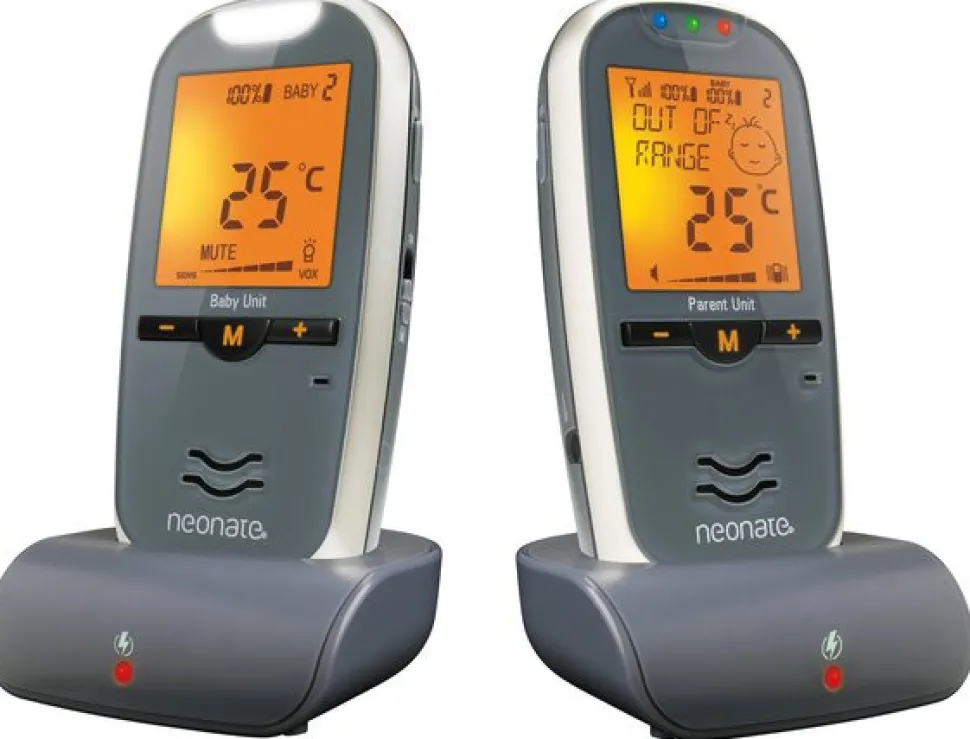 Neonate BC-6900D babyalarm: Er en af de absolut bedste babyalarmer på markedet. Med en rækkevidde på 800 meter, 200 timers standby tid, stor og tydelig LCD display, sleep-timer, talk back funktion, temperatur måler, vibrationsfunktion på forældrenhed – alt dette er bare nogle af de ting der gør Neonate BC-6900D en af de bedste. Avanceret software hjælper forældre med at betjene mere end én babyenhed, når det er nødvendigt. Med denne babyalarmen kan du nemlig tilslutte op til 3 forskellige babyenheder til den samme forældreenhed.