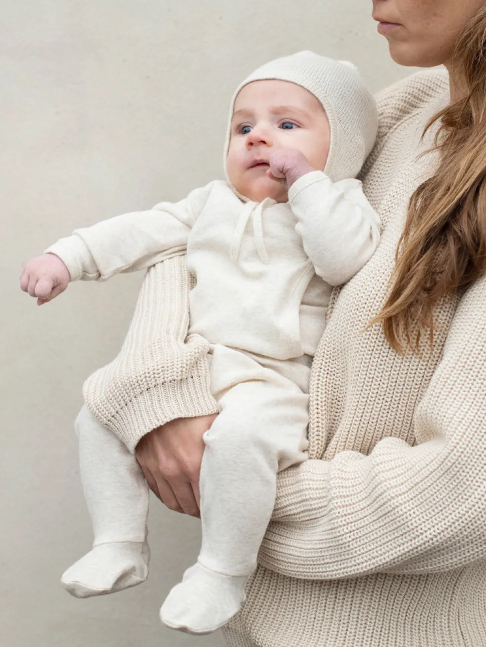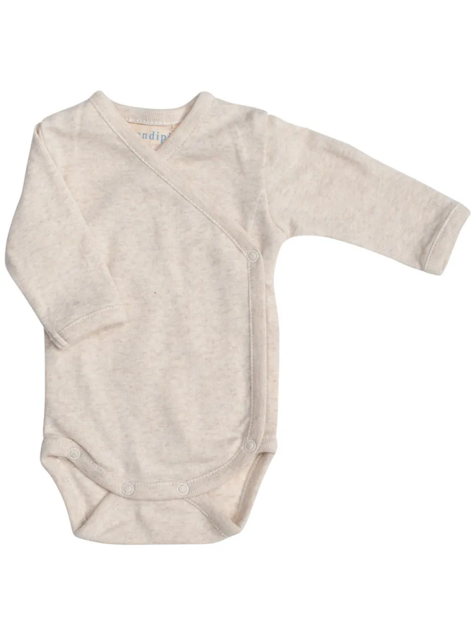 Slå-om body med trykknapper til baby første tid. Syet af blød økologisk bomulds rib.