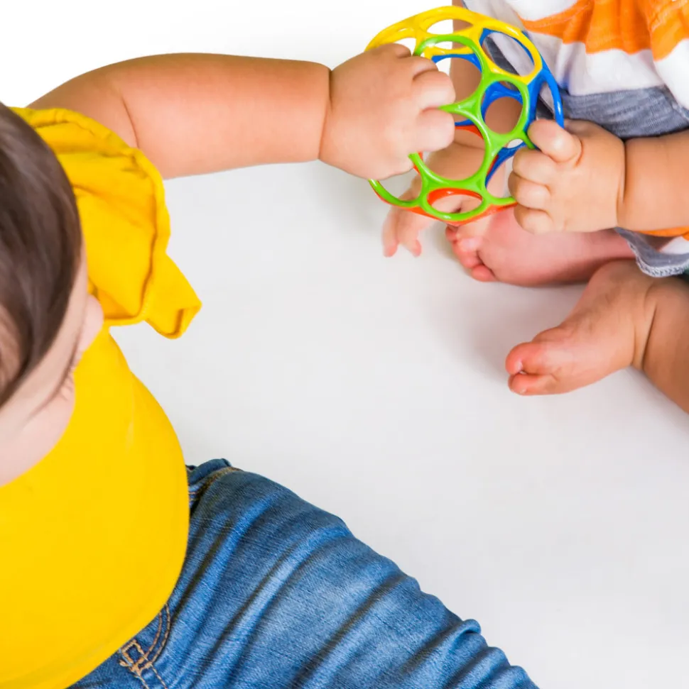 Oball Classic er den bedste bold, der findes. Dette prisvindende fleksible design hjælper babyer i alle aldre at gribe, fange og kaste bolden. Den bløde konstruktion med 32 store huller gør det super nemt for små hænder at gribe fat i og lege med bolden. Nemt at rengøre med en fugtig klud.