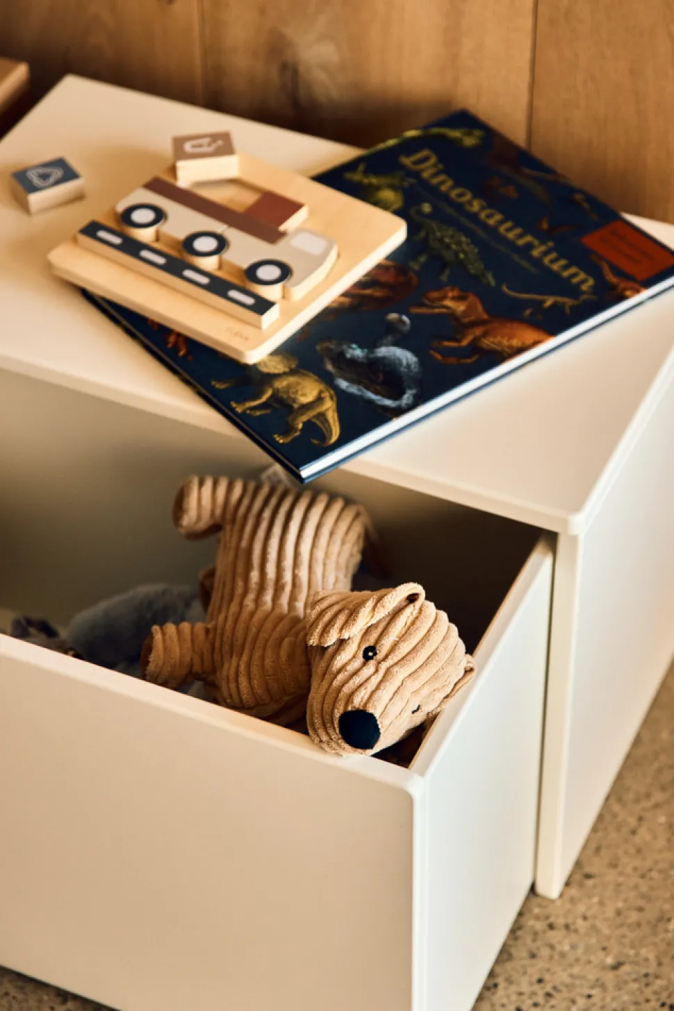 FLEXA DOTS opbevaringsbænk 3-i-1, der er designet af Charlotte Høncke, er det perfekte opbevaringsmøbel til legetøj. Opbevaringsbænken kan stå på børneværelset, i stuen eller entréen, og den kan bruges til opbevaring, som bænk eller sengebord. De bløde gummihjul beskytter gulvet og gør det nemt for selv små børn at flytte bænken og rydde deres legetøj op. Udskæringen sørger for, at barnets fingre ikke kommer i klemme, når bænken lukkes.