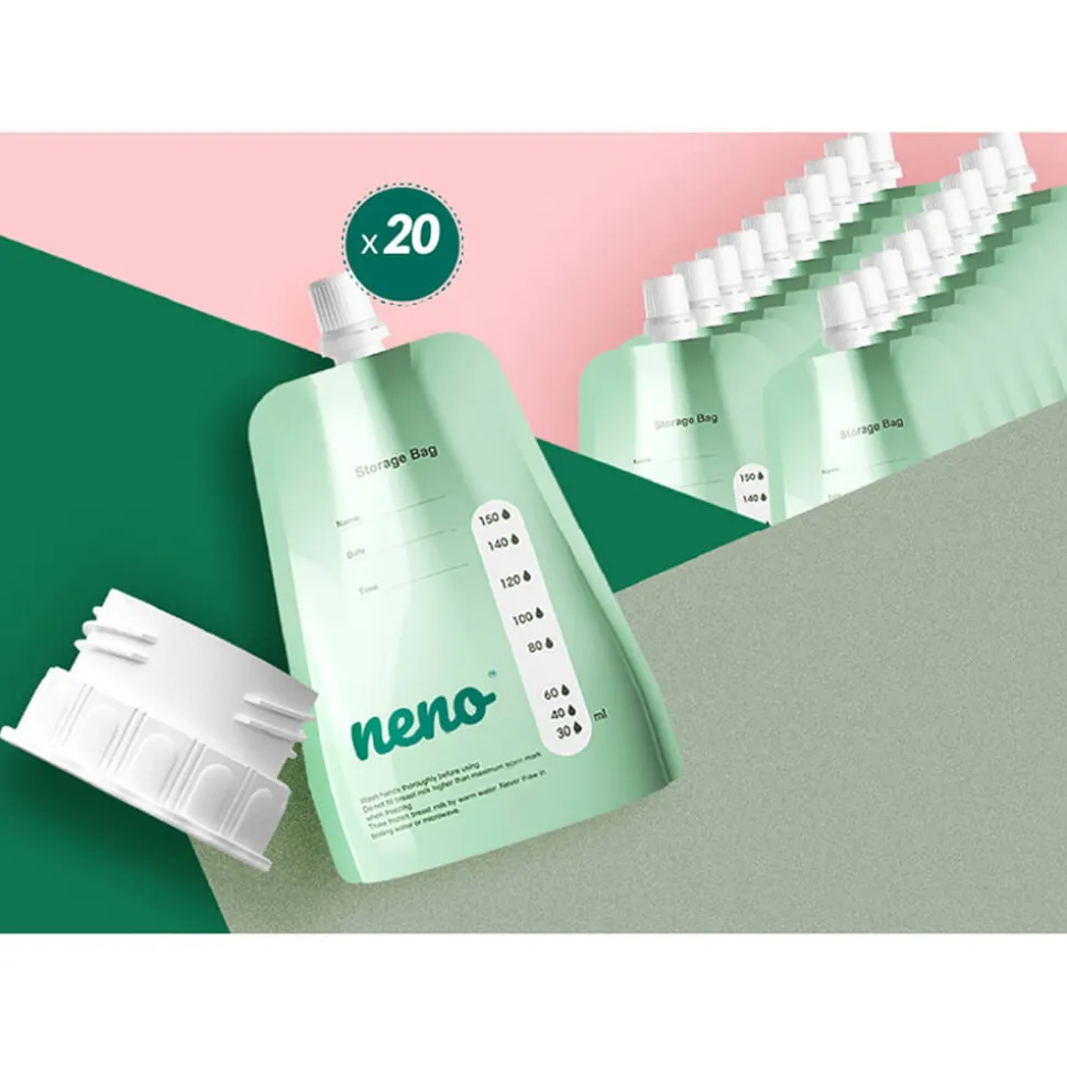Disse poser er til bekvem og hygiejnisk opbevaring af pumpet modermælk. De er fremragende at opbevare i både køleskab og fryser og det er også muligt at varme modermælken direkte i posen. Designet gør, at de kan stå oprejst under brug og lægges fladt for at spare plads under opbevaring. Poserne kommer med en praktisk adapter som gør at de kan tilsluttes direkte til Nenos brystpumper. Funktionen er smidig, tidsbesparende og frem for alt hygiejnisk, da modermælken ikke flyttes mellem forskellige beholdere. Adapteren passer også sammen med Nenos sutteflasker så låget med din sut kan tilsluttes direkte til posen. Praktisk og pladsbesparende når du er på farten. Opbevaringsposerne er lavet af sikker plast af høj kvalitet og lukkes med skruelåg for at eliminere risikoen for lækage og forurening.