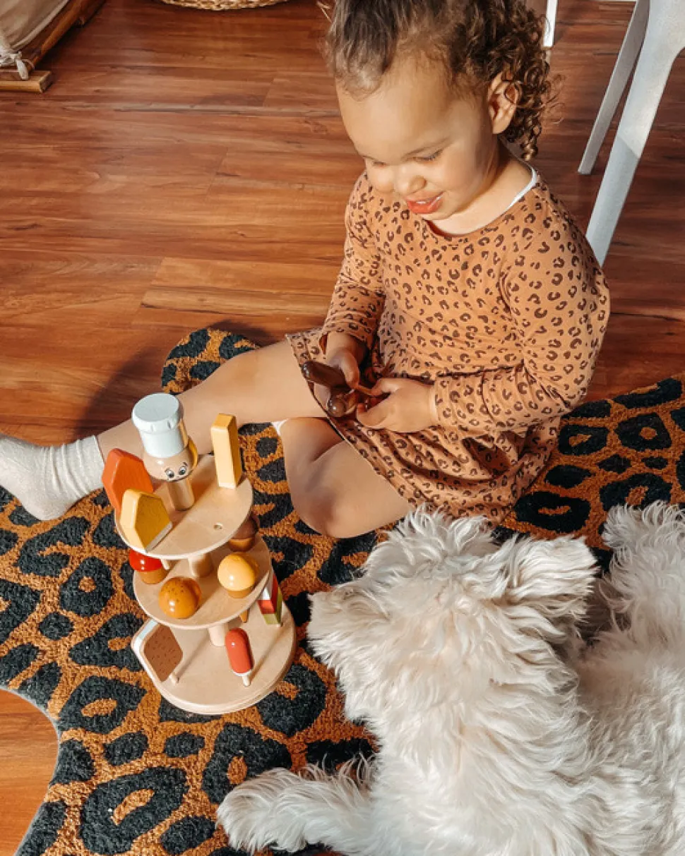 Opsats i træ med ispinde og kræmmerhuse.