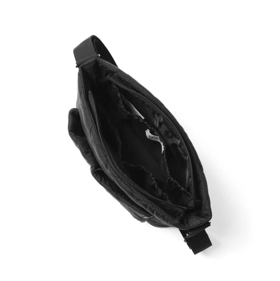 Denne taske er fremstillet af 100% certificeret genanvendt materiale, både udvendigt og indvendigt. Tasken har flere indvendige og udvendige lommer, så du kan holde orden i dine sager, og stroppen er justerbar, så den tilpasses, så den passer præcis til dig eller til at hænge på barnevognen.