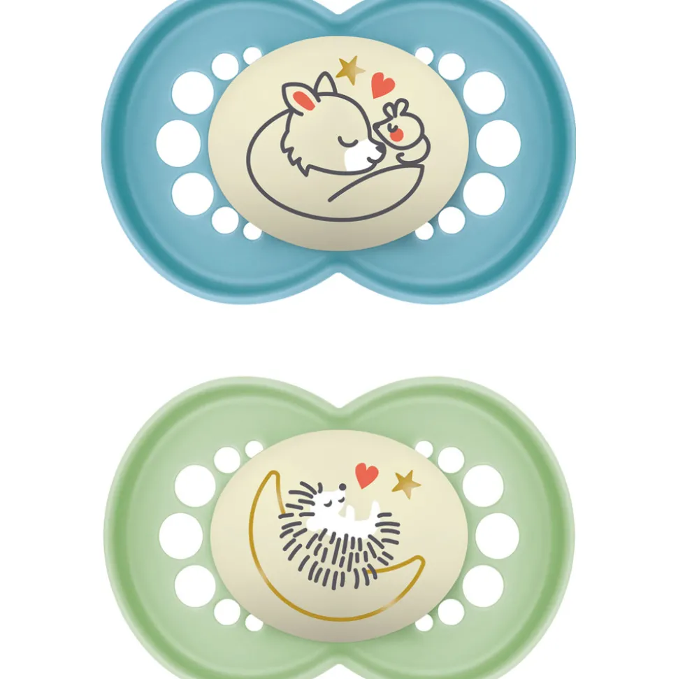 En klassisk sut, der er skånsom mod huden takket være de store lufthuller og den knoprede inderside. Sugedelen er lavet af silkeblød silikone, MAM Skin SoftTM, som føles blød og velkendt ligesom mors hud og accepteres af 94% af babyerne*. Med sin selvlysende knop er MAM Original Night let at finde i mørke – for lettere nætter.MAM Original leveres i en praktisk opbevarings- og steriliseringsæske, som gør det nemt at sterilisere sutterne i mikrobølgeovnen.