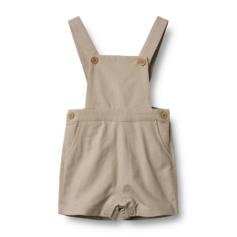 Ærmeløse overalls med korte ben i en blød bomuld- og hørblanding til din baby.