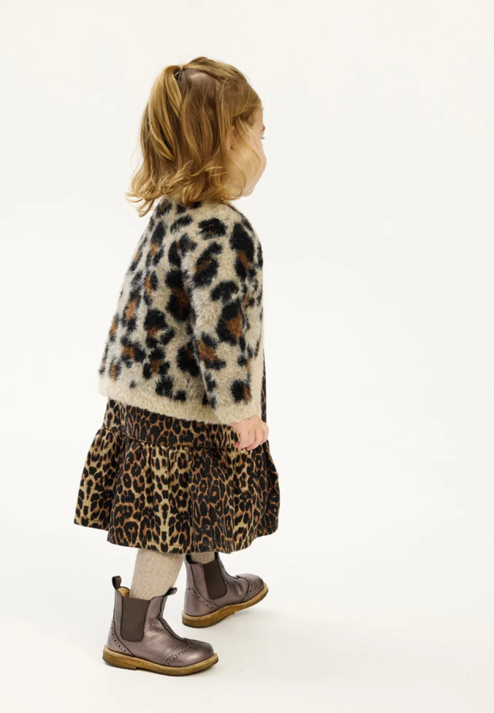 Denne cardigan er både blød og trendy med sit iøjnefaldende leopardmønster. Designet fra THE NEW siblings har en behagelig, afslappet pasform, hvilket gør den perfekt til hverdagsbrug. Den lukkes med tre knapper foran, hvilket giver den et klassisk præg. De ribbede kanter ved ærmerne tilføjer ekstra komfort og sikrer en god pasform. Denne cardigan er ideel til at tilføje et strejf af stil til ethvert outfit og kan nemt kombineres med både bukser og kjoler.