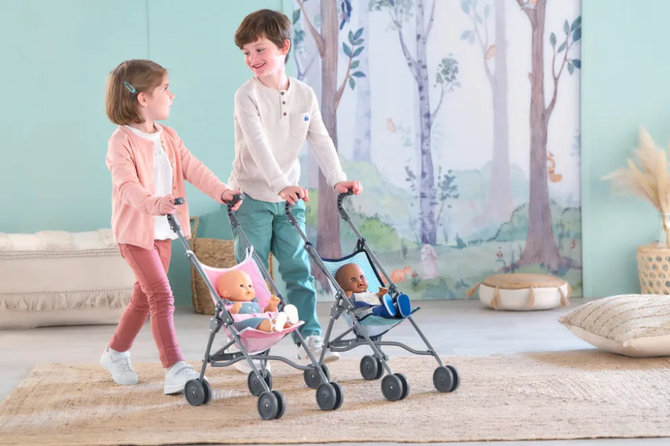 Denne praktiske paraplyklapvogn er designet til dukker med en størrelse på 36-42 cm og er inspireret af rigtige babyklapvogne. Den er let og foldbar, hvilket gør den nem at tage med sig, uanset hvor legen fører hen. Klapvognen er udstyret med to sikkerhedslåse, der forhindrer, at små fingre kommer i klemme, hvilket sikrer en tryg og sikker leg.