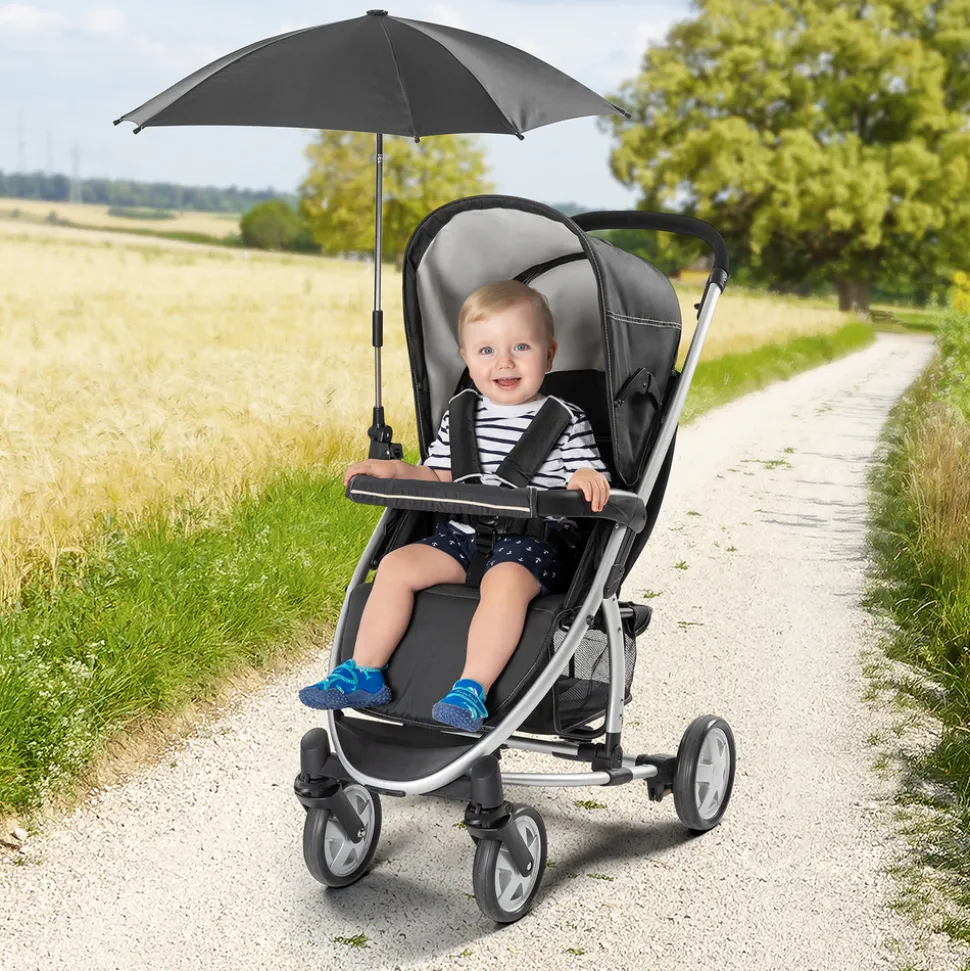 Praktisk solafskærmning til din barnevogn eller klapvogn. Parasollen beskytter barnet mod solskodning med sin beskyttelse på UV50+ og giver rigtig god skygge til turen på de solrige dage. Parasollen er nem og hurtig at påsætte og tage af igen. Den er ligeledes nem at justere i forhold til solens position. Størrelse: Ø 80 x H 68 cm.