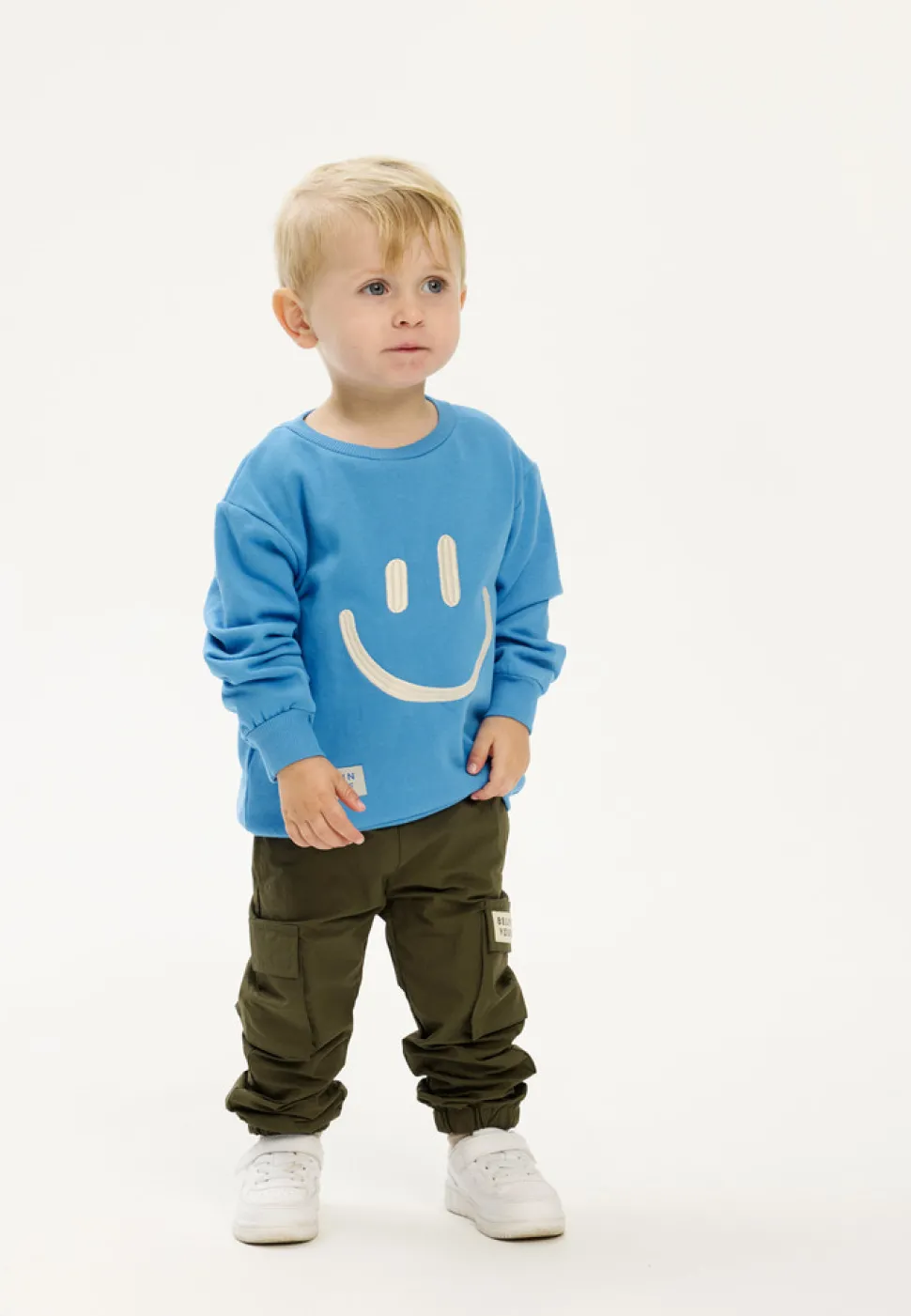 Charmerende baby-sweatshirt fra THE NEW siblings med et glad smiley-print i en skøn lyseblå farve. Denne sweatshirt er perfekt til hverdagsbrug og hyggelige weekender. Kombinér den med sweatpants for et afslappet look eller med jeans for et mere casual outfit.
