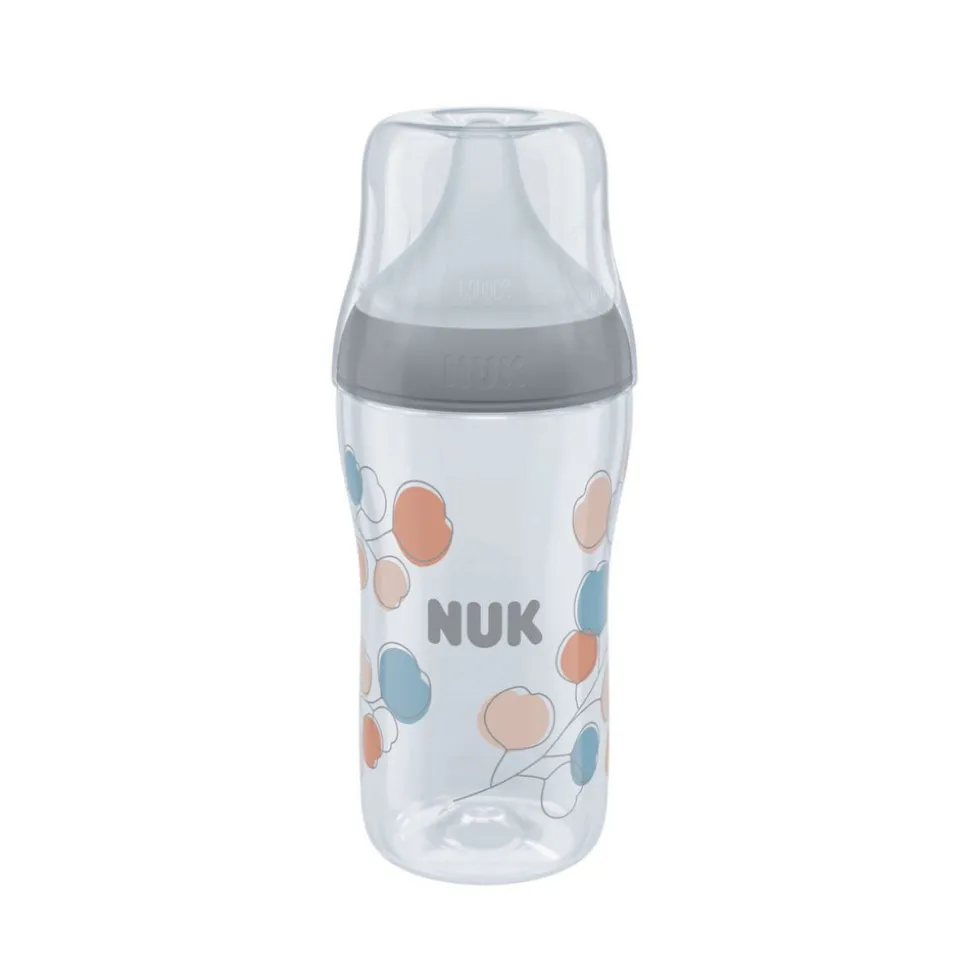 Flaskesutten på den nye NUK Perfect Match sutteflaske er utrolig blød og fleksibel. Den glatte overflade minder om moderens hud og formen efterligner moderens bryst, hvilket gør at barnet instinktivt ved hvordan det skal hvile læberne mod sutten.Når barnet begynder at sutte, ligger flaskesutten blødt mod læber og gane på en naturlig måde. Suttens form gør det nemt for din baby at sutte på den måde, jordemødre og børnelæger anbefaler*: med åben mund og læberne omkring brystet/sutten.Komfortabel flaskeform og praktisk temperaturindikatorFlasken har en tilspidset form og er behagelig at holde under fodring. Takket være den brede åbning er det nemt at hælde både væske og pulver i uden at spilde.Den patenterede temperaturindikator viser, hvornår indholdet har den rigtige temperatur. Hvis indholdet er for varmt, skifter indikatoren farve fra blå til hvid. Husk at dette kun er et hjælpemiddel, tjek altid temperaturen inden du giver flasken til dit barn.Tilpasser sig barnets mundSå snart din baby begynder at sutte, tilpasser den bløde flaskesut formen på ganen og læberne. Dette bekræftes også af 95 % af mødrene i den uafhængige undersøgelse*.Takket være den blidt tilspidsede form, vil dit barn instinktivt finde det optimale sted for munden at omgive sutten, så det kan drikke på en rolig og afslappet måde. Dette bemærkes også af 97 % af mødrene*.98 % babyaccept*En uafhængig markedsundersøgelse i Tyskland i 2023 viser, at hele 98 % af børn accepterer NUK Perfect Match.Anti-kolikAlle flaskesutter har en Anti-Kolik ventil, som giver et naturligt flow uden at skulle holde pause. Dette minimerer risikoen for at barnet sluger luft når det spiser.Ekstra fleksibel og blød flaskesutt med ordentlig læbestøtteFlaskesuttens materiale er usædvanligt tyndt og derfor meget fleksibelt. Overfladen er blød og glat, ligesom mors hud.Læbestøtten føles som blød hud mod dit barns læber. Flaskesuttens design gør, at kun babys læber rører ved sutten. Det betyder, at barnets følsomme hud omkring munden er fri, luften kan cirkulere frit og hudirritationer forhindres.Fås i flere størrelserPerfect Match sutteflaske fås i 2 størrelser: 150 ml (inkl. flaskesut størrelse S) og 260 ml (inkl. flaskesut størrelse M).Perfect Match flaskesut fås i 3 størrelser: S, M og U.Med størrelse U kan din baby selv regulere drikkeflowet.• Naturlig flaskefodring• Tilpasser sig barnets mund• Temperaturindikator• Lavet i Tyskland• BPA-fri*Uafhængig markedsundersøgelse, Tyskland, 2023