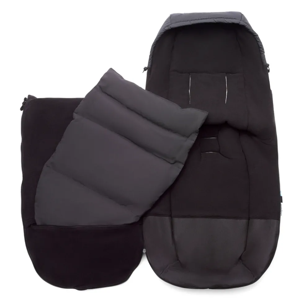 Yderstoffet er fremstillet af et slidstærkt vandafvisende materiale af høj kvalitet og med vandtætte lynlåse, der bevarer sin ydeevne efter mange års brug. Takket være det aftagelige dunfyld, der er ansvarligt produceret, kan det justeres, så det passer til varmere dage. Bugaboo performance kørepose er det perfekte og undværelige tilbehør til at holde barnet varm, tør, behagelig og komfortabel på selv de koldeste og vådeste dage.