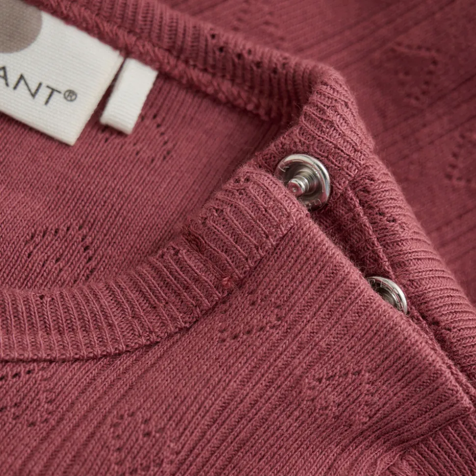 Sød body i pointelle med et elegant ternet mønster. Denne body er fremstillet i en blød og behagelig bomuldskvalitet, der føles skånsom mod den sarte hud. Den har lange ærmer og lukkes praktisk med trykknapper mellem benene, hvilket gør den nem at tage af og på. Et stilfuldt og komfortabelt valg til de mindste.