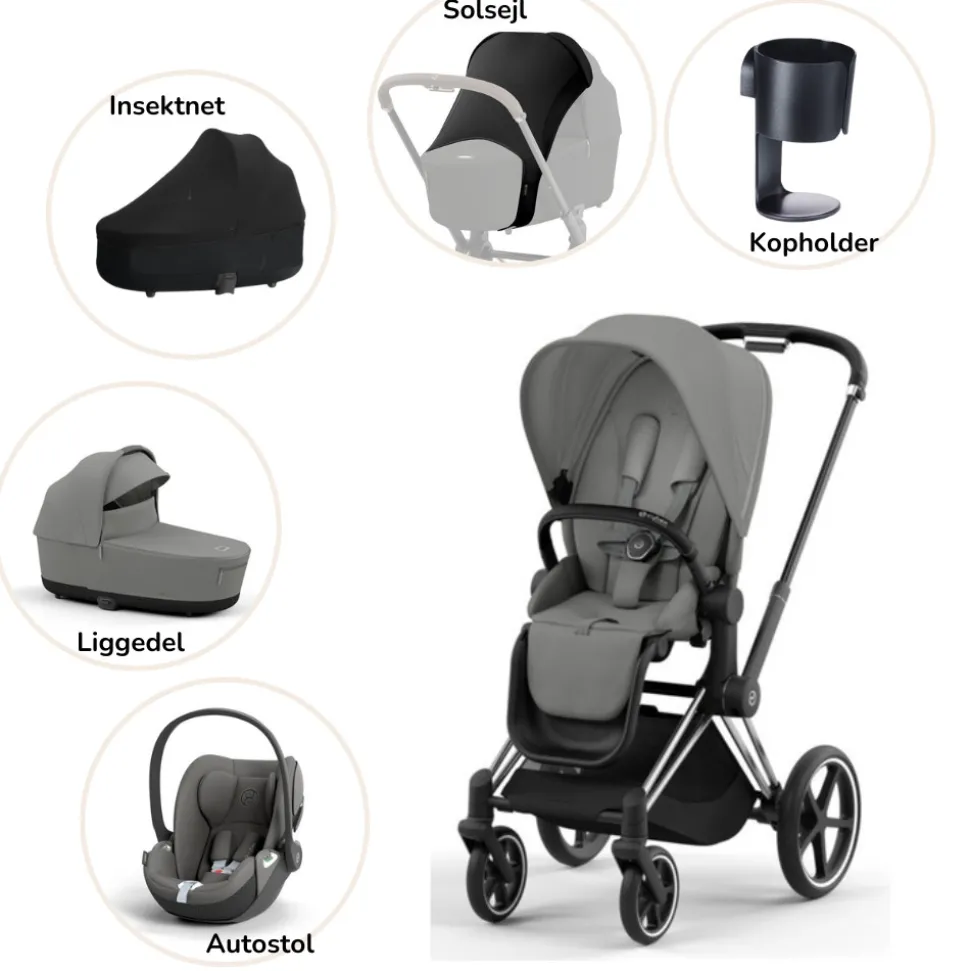 Liggedelen: For maksimal komfort og beskyttelse til din lille nyfødte og til 6 mdr. Du skal blot klikke barnevognskassen på Priam stellet med adaptere, og du er klar til at gå.