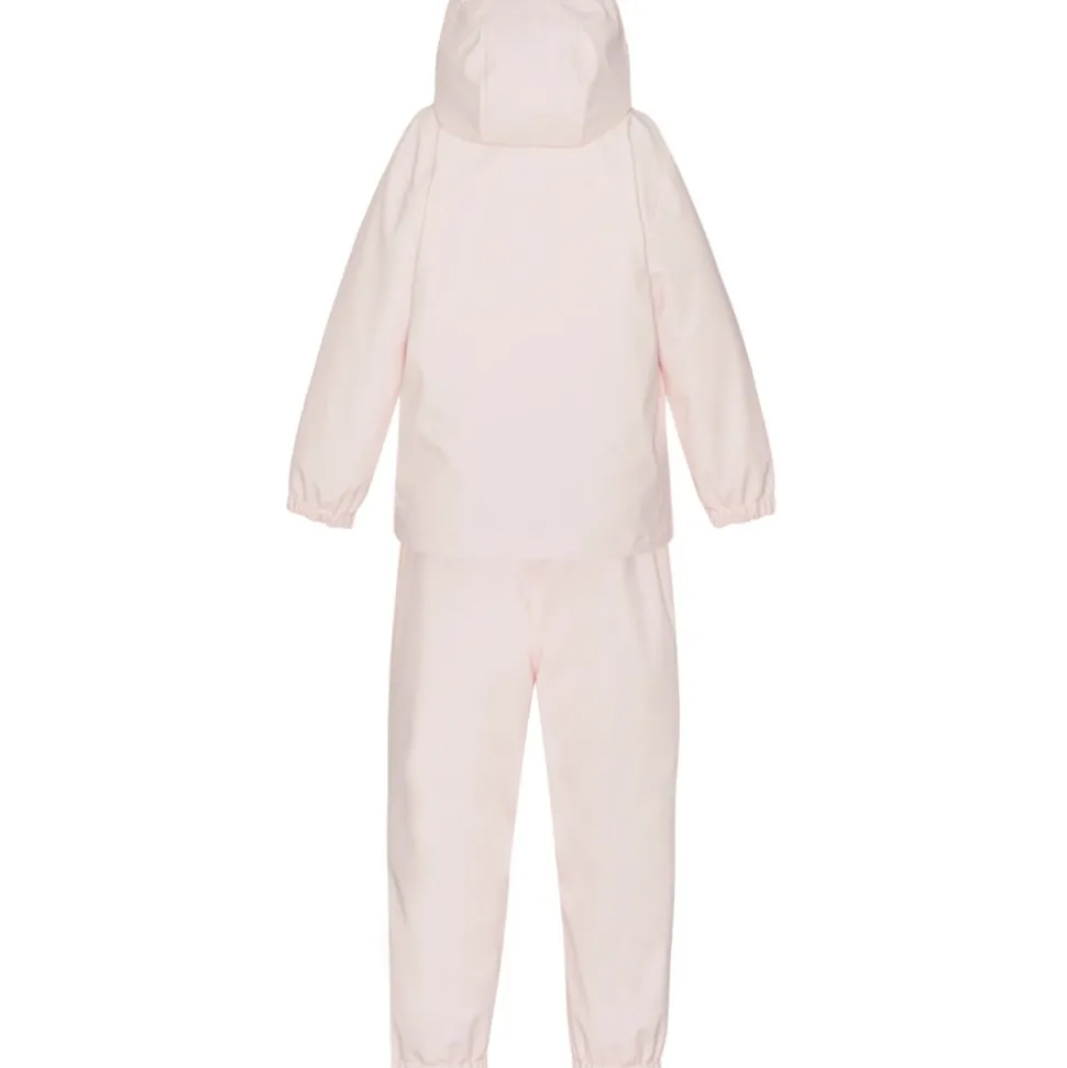 Vores PU-regnsæt er blødt og vandtæt med svejsede sømme. Det er velegnet til leg i vand og regn. PU-belægningen, der er på overfladen, kan ridses og få huller, hvis den gnides mod sand og sten (hårde overflader), eller hvis den bliver revet af grene eller skarpe genstande.