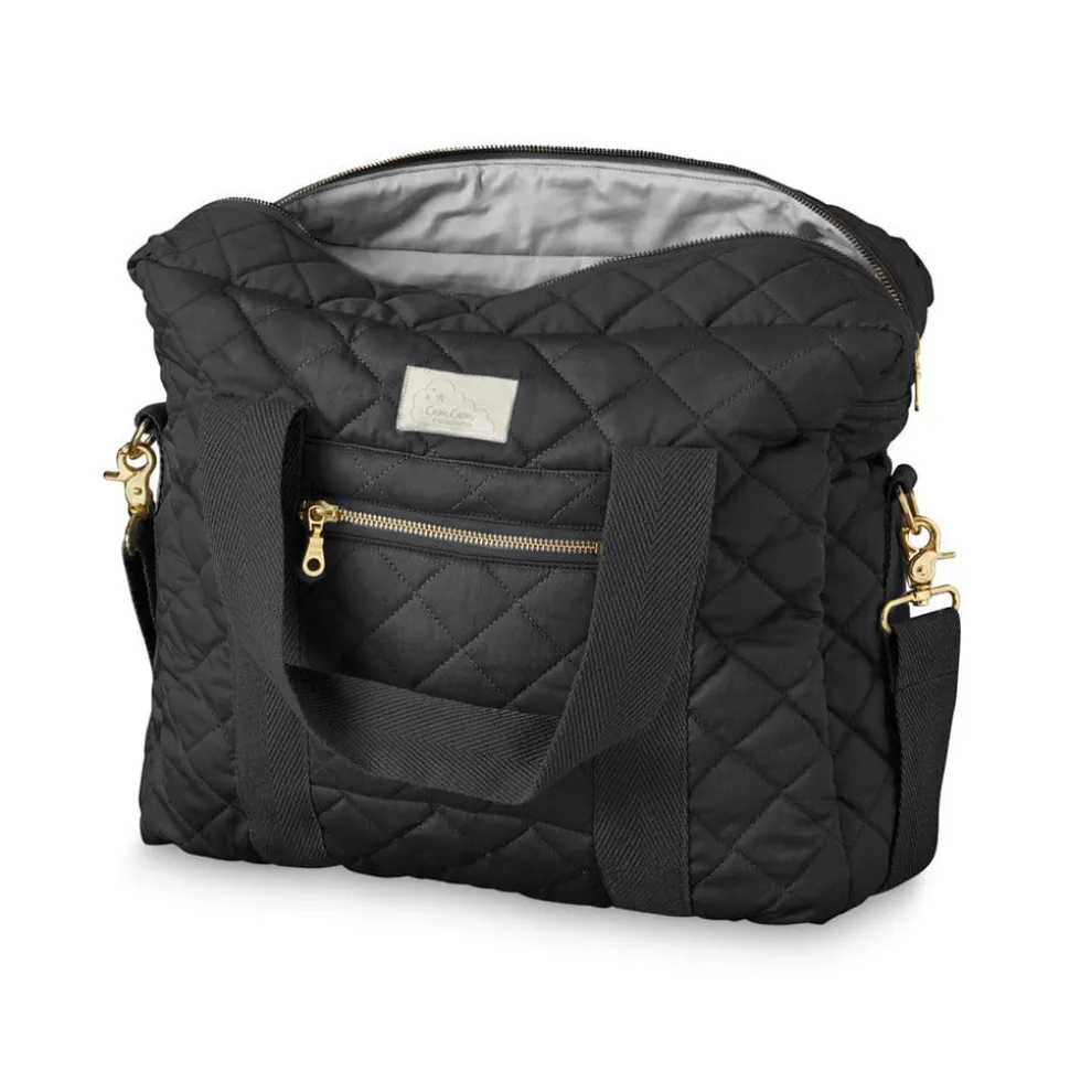 Den praktiske, stilfulde og populære quiltet pusletaske i klassisk og minimalistisk design, i en ny forbedret udgave. Pusletasken er coated både indeni og udenpå, hvilket gør den holdbar, samt vand- og smudsafvisende. Tasken har kraftige stropper, og en justerbar tung skulderrem, der passer perfekt rundt om barnevognshåndtaget. Tasken er minimalistisk og holdbar og lavet til at holde, så den kan bruges i pusletiden, og efterfølgende som en smart weekend taske. Den er designet til hverdagsbrug og lavet til ikke at ligne traditionelle pusletasker. Tasken har flotte detaljer som YKK-lynlåse af messing, praktiske elastiklommer til organisering indvendigt, en lomme til flasken og en lynlåslomme både indvendigt og udvendigt for at passe til mindre fornødenheder.