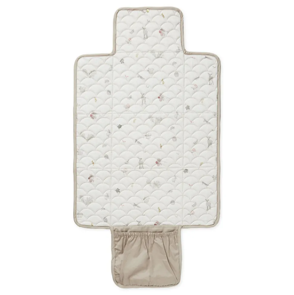 Praktisk pusleunderlag med et fint, quiltet bølge-mønster – perfekt til skiftesituationer ude af huset, hvor du har brug for et blødt og rent underlag til den lille. Det kan nemt foldes sammen med én hånd til en praktisk størrelse, der passer i pusletasken. Pusleunderlaget er vatteret med et blødt skumlag, og er coated på ydersiden, så det er smuds- og vandafvisende.