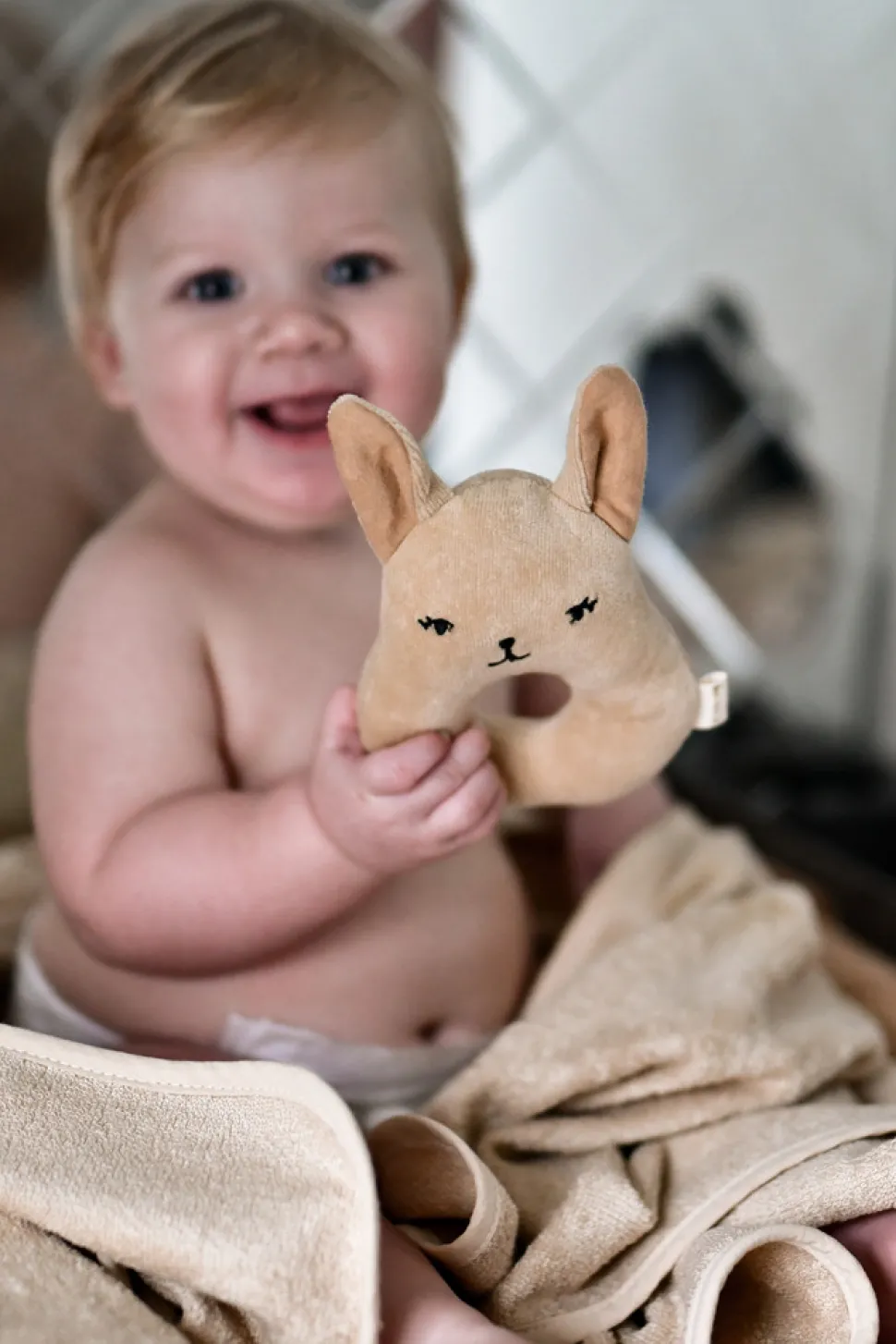 Rattle – Bunny , er en rangle med lys som er nemt for babyer at holde ved. Produktet lavet af velour som er blød at røre ved.