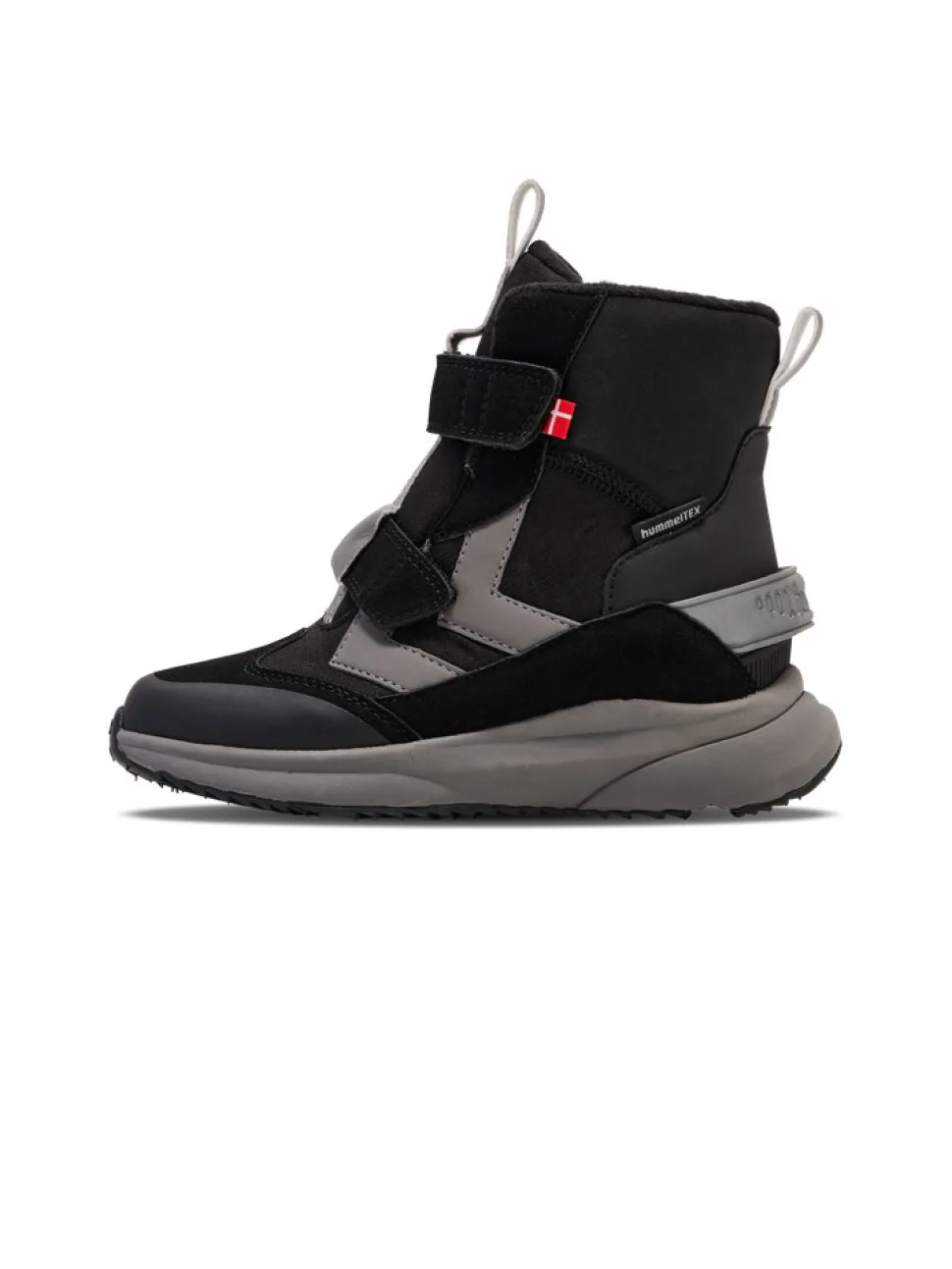 REACH CONQUER SUPER HIGHT TEX JR er en high-top model i ripstopvævet nylon og polyester med kunstlæderbesætninger. En klipbar velcrorem, elastiksnørebånd samt en vævet hælstrop gør det muligt for børn at justere skoen efter behov og giver god stabilitet. Denne lette og åndbare sneakerstøvle er vandafvisende med en skridfast sål og beskyttende hotmelt ved tæerne, hvilket gør den perfekt til udendørs eventyr i al slags vejr. Skoen er nem at få af og på takket være hælens trækstrop.