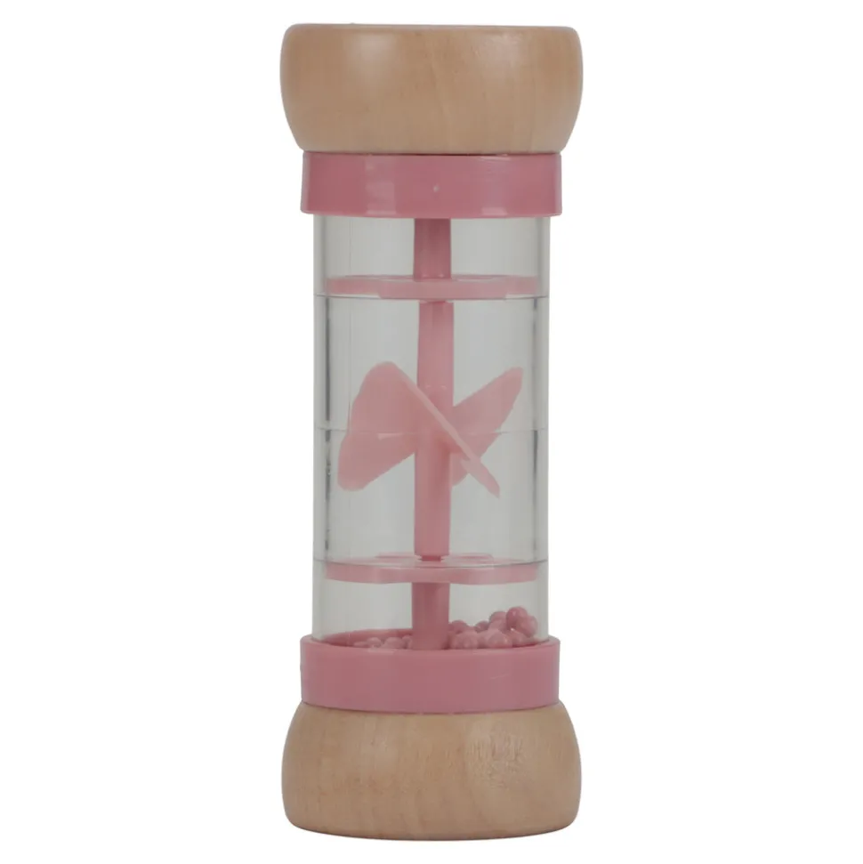 Ryst og rasle! Vend regnmageren om og lyt til den beroligende lyd af kuglerne, der bevæger sig fra side til side. Regnmagerne stimulerer babyens sensoriske udvikling og musikalske talent. Kuglerne falder gennem små åbninger i røret og får propellen til at rotere, hvilket resulterer i en behagelig lyd. Regnmageren er designet til små hænder og er behagelig at holde om. Toppen og bunden af træ er dekoreret med en illustration af en blomst og en sommerfugl fra Fairy Garden-kollektionen.