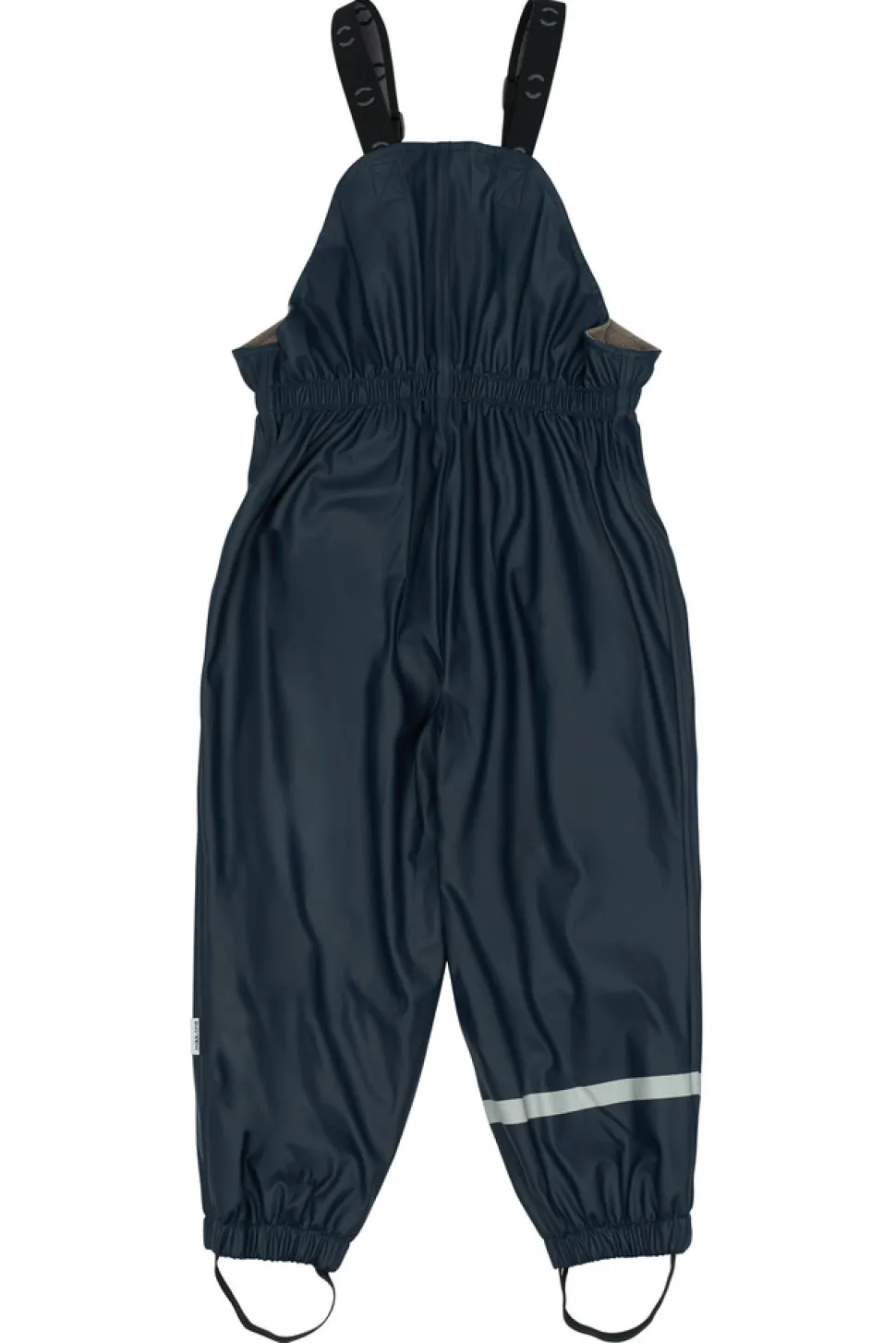 Fra str. 86 til 104 har regnbukserne smæk, så de også dækker mave og ryg. Bukserne har også justerbare seler, der lukkes med klikspænder.