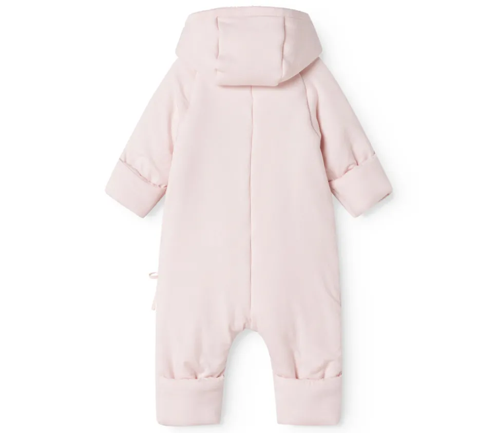 Denne bløde og lune heldragt er perfekt til at holde de mindste varme på kolde dage. Den har en praktisk slå-om-lukning med trykknapper og bindebånd, som gør den nem at tage af og på. Heldragten er designet med smarte ombuk ved både hænder og fødder, så barnet kan holdes ekstra varmt uden brug af vanter eller futter.