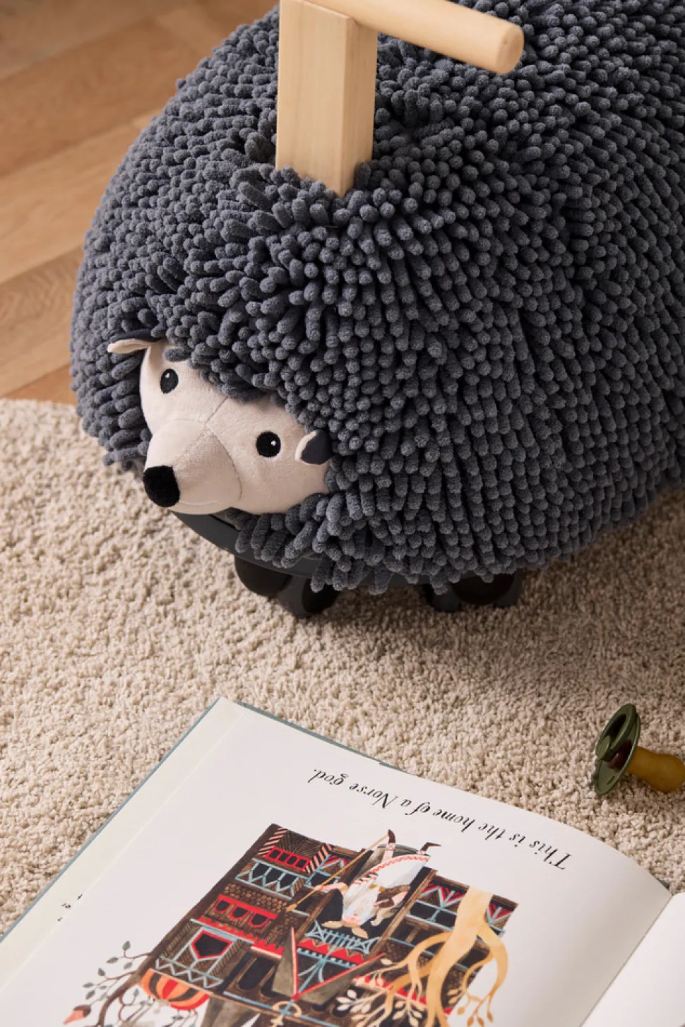 Ride-on pindsvinet giver dit barn mange timers sjov leg, mens dit barn træner motorik, styrke og balance. Køretøjet er stabilt i konstruktionen takket være dets fire leddelte hjul, der er let at dreje. God venderadius og gummiet omkring dækkene dæmper lyden, når krudtuglen kører rundt i stuen.