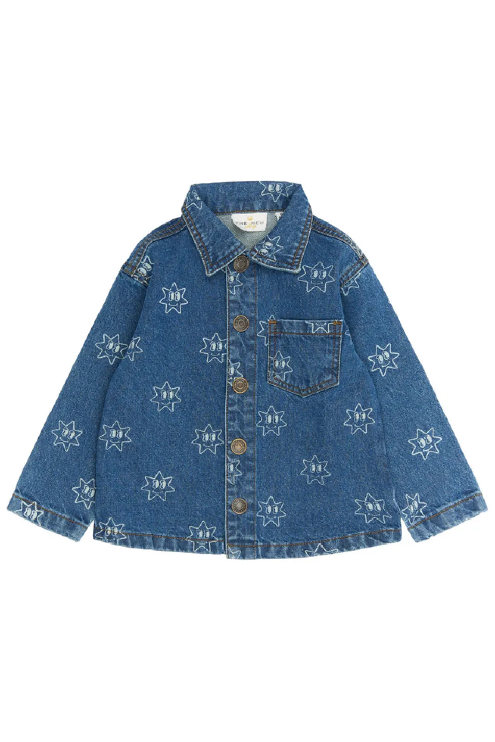 Denne denimjakke fra THE NEW Siblings er et sjovt og stilfuldt yderlag med et legende twist. Den har et all-over print af små stjernefigurer, hvilket giver den en unik og eventyrlig stemning. Jakken har en klassisk knap foran, brystlomme og oversized pasform – perfekt til at tilføje personlighed til ethvert hverdagsoutfit. Kan kombineres med de matchende jeans for et koordineret sæt.