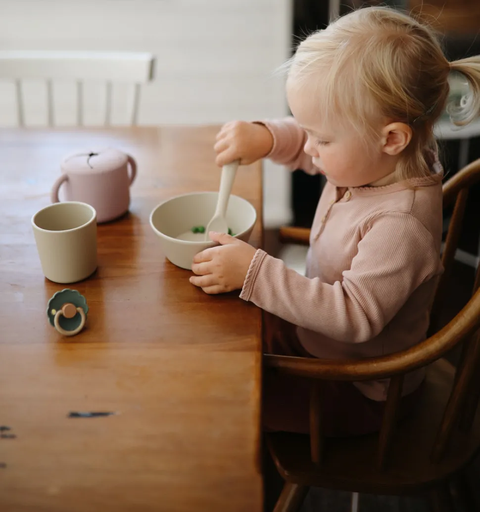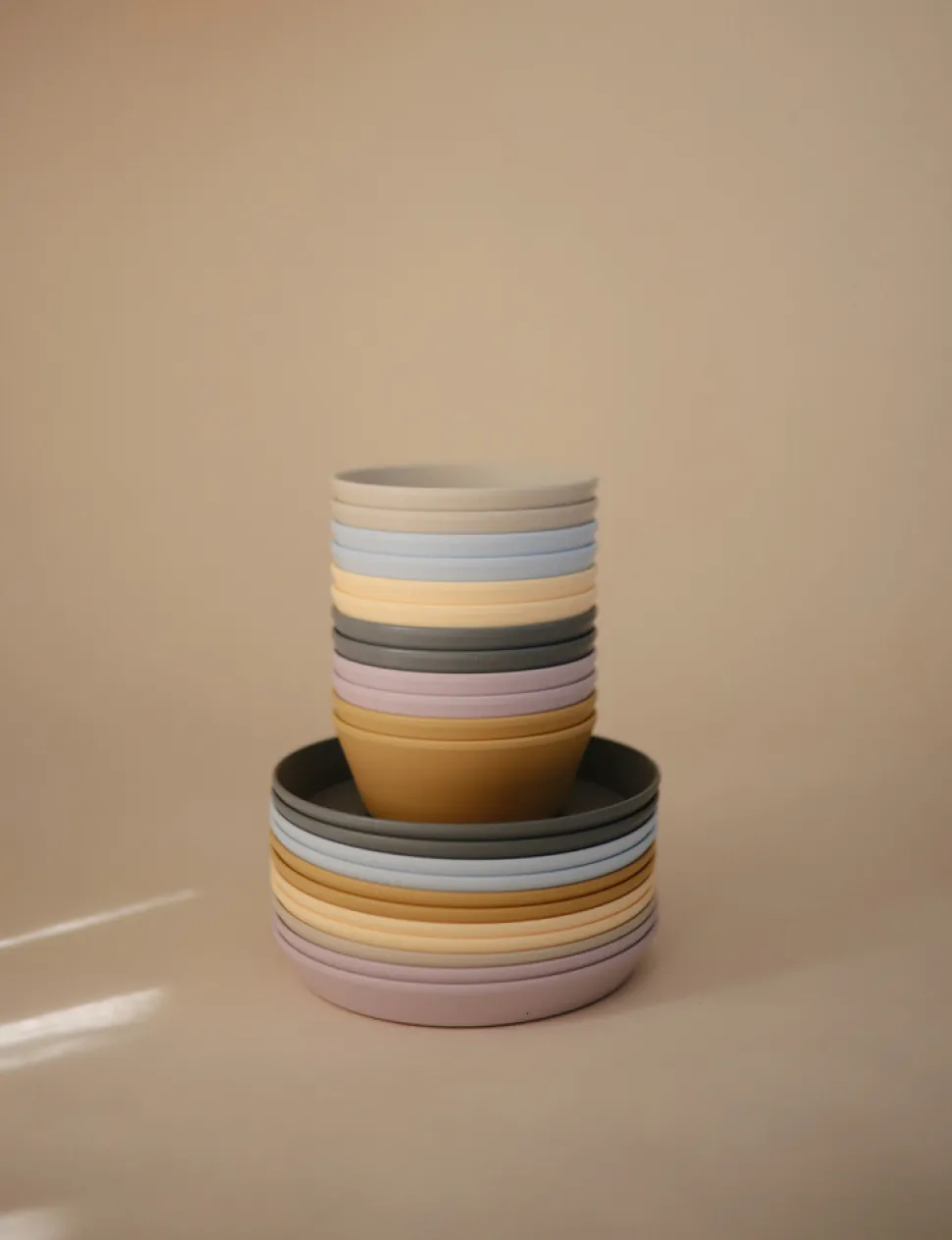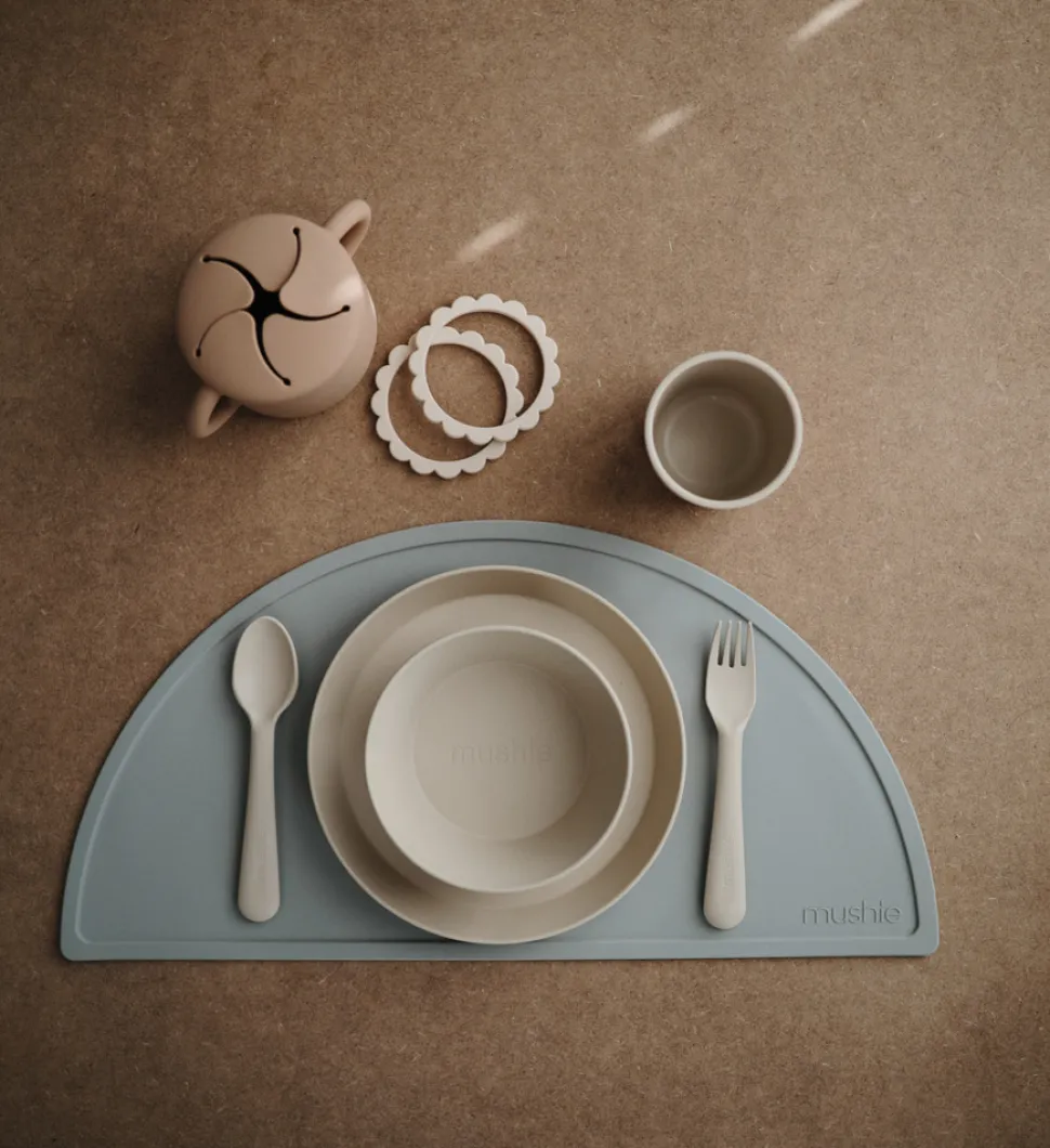 Mushie runde tallerkener i elegant design. Denne lækre babytallerken er en del af Mushies kollektion Danish Smag. Det er en rund middagstallerken i bløde toner, der passer perfekt ind i et minimalistisk nordisk hjem. Samtidig opfordrer det babyvenlige design til leg og nysgerrighed – et godt udgangspunkt når man skal lære at være madmodig. Tallerkenen er fremstillet i PP med bløde, afrundede kanter, hvilket giver en tallerken, der både er behagelig at røre ved og solid at håndtere. Tallerkenen er derfor ikke kun velegnet som begyndertallerken, det stilrene design gør den også perfekt, når der skal grilles på terrassen eller nydes en picnic i det fri. Mushies serie af babyservice er produceret i Danmark og fri for bisphenoler og andre skadelige stoffer. Tallerkenen tåler både mikroovn og opvaskemaskine.