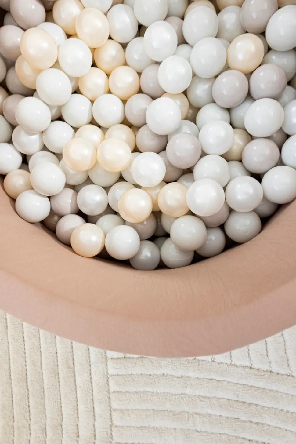 Rundt boldbassin inklusiv 200 bolde i farvemix som på foto – cafe latte som lægger op til mange timers sjov og stimulerende leg. Boldbassinet har masser af sjove legmuligheder og er ideelt for at træne balance og fornemmelsen for egen krop. Det flotte enkle design og farve passer nemt ind i mange forskellige hjem og rum.