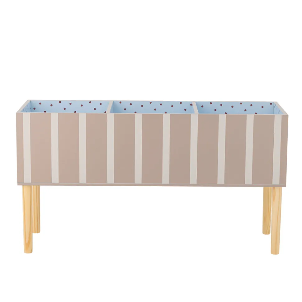 Salam Bogreolen fra Bloomingville MINI er lavet af FSC-certificeret MDF og vil pynte i ethvert børneværelse med sit varme udtryk og fine hvide striber. Den lave, åbne form gør det nemt for børn at nå deres bøger, bamser og små skatte. En hyggelig og funktionel bogkasse, der inviterer til både leg og orden.