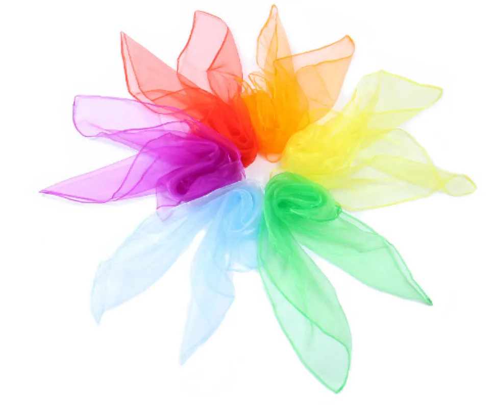 Sansetørklæder til jonglering, dans og leg. 6 forskellige signalfarver