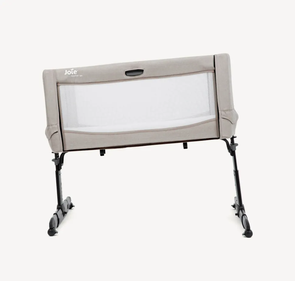 Med Joie Roomie go side by side seng får baby en tryg nattesøvn fra start lige ved siden af mor, eller far. Med en side by side er det nemt lige at berolige, nusse eller give mad. Med forskellige højder er det let at finde den perfekte indstilling der passer til jeres seng, og den fastgøres nemt så alle kan sove trygt. Joie Roomie go har en beroligende hældning der forsigtigt skåner og hjælper baby med at fordøje deres måltid ved sengetid. Komfortabelt polstret, men alligevel fast madras leveres med denne side by side, og er mesh-beklædt for bedre ventilation. Foldes på få sekunder for kompakt opbevaring eller for at tage med på rejsen, i den medfølgende rejsetaske.